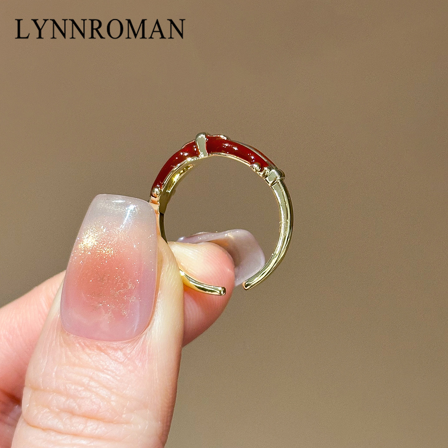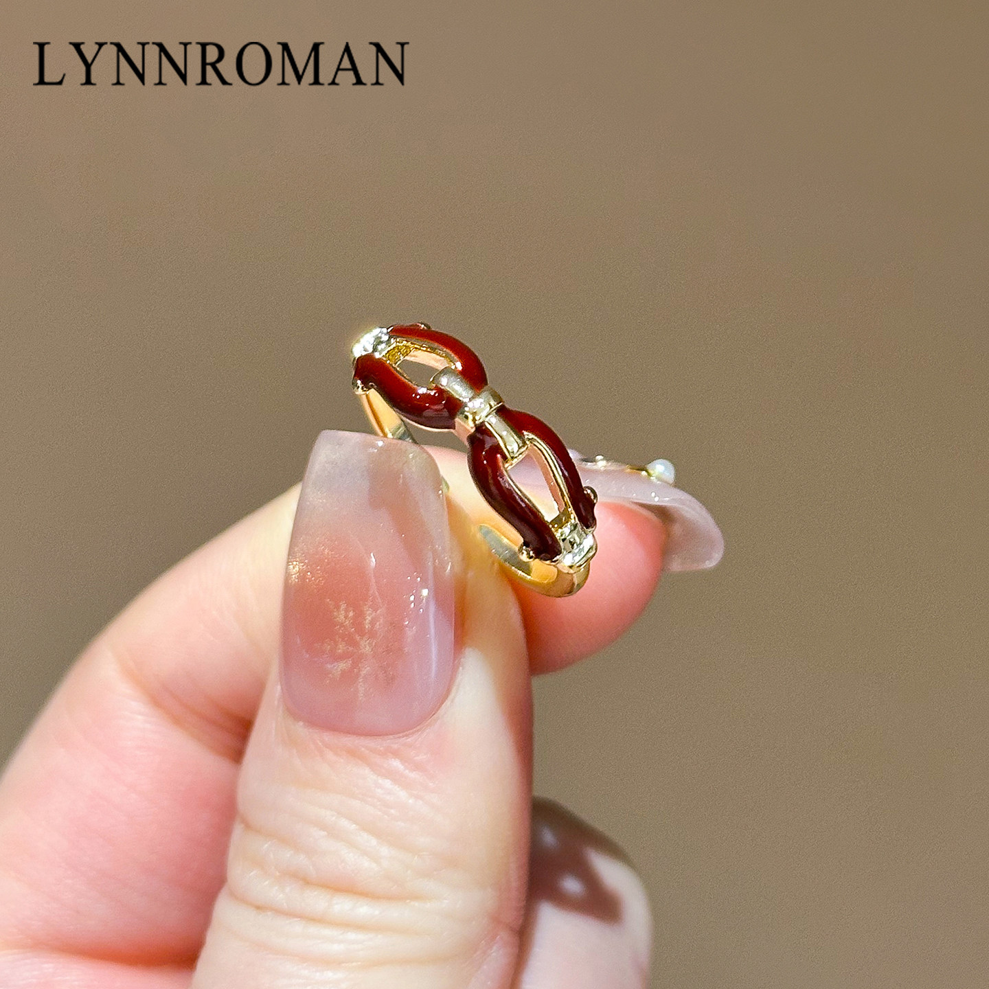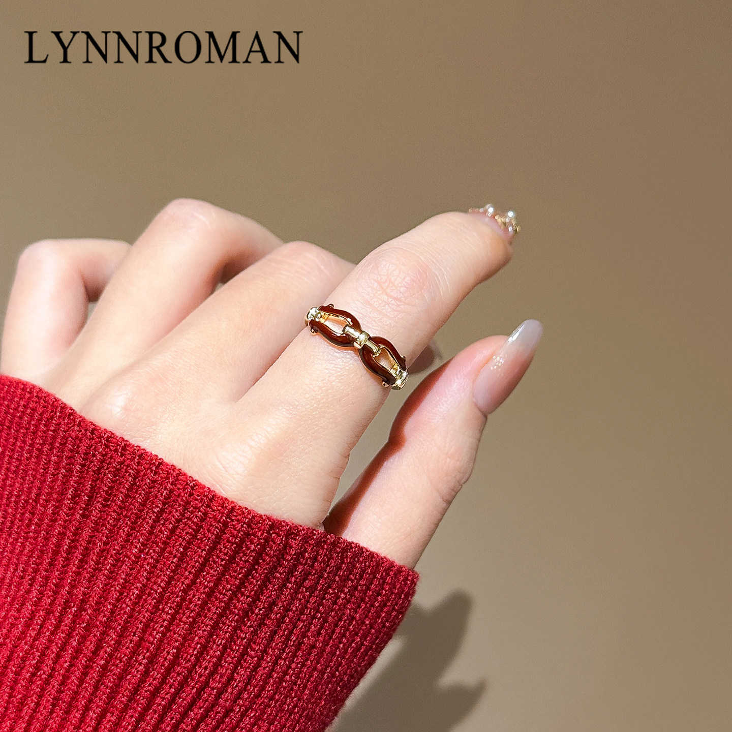 复古安哥拉红色滴釉链环开口戒指女小众设计轻奢高级感可调节指环