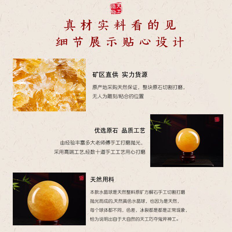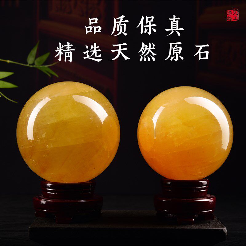 天然黄色真水晶球摆件纯原石招财客厅厨房卧室办公室高档饰品水晶
