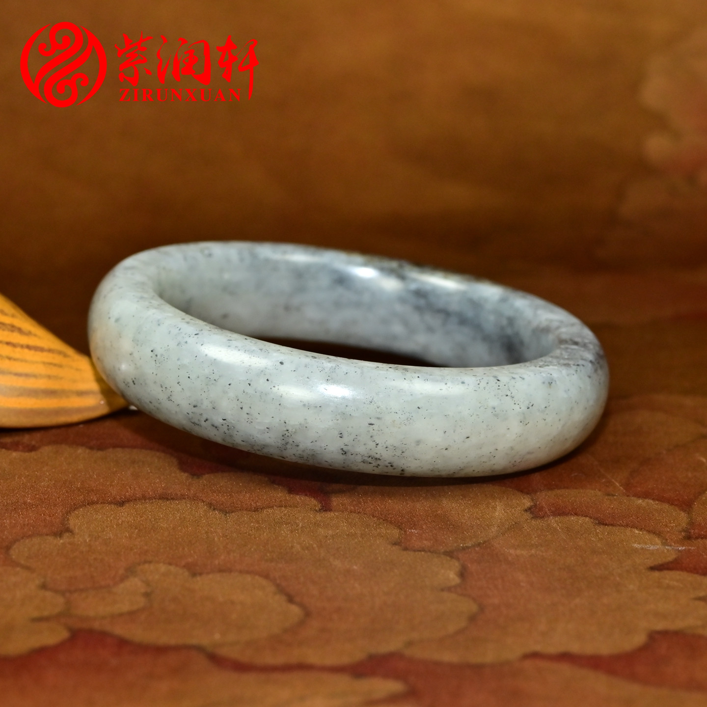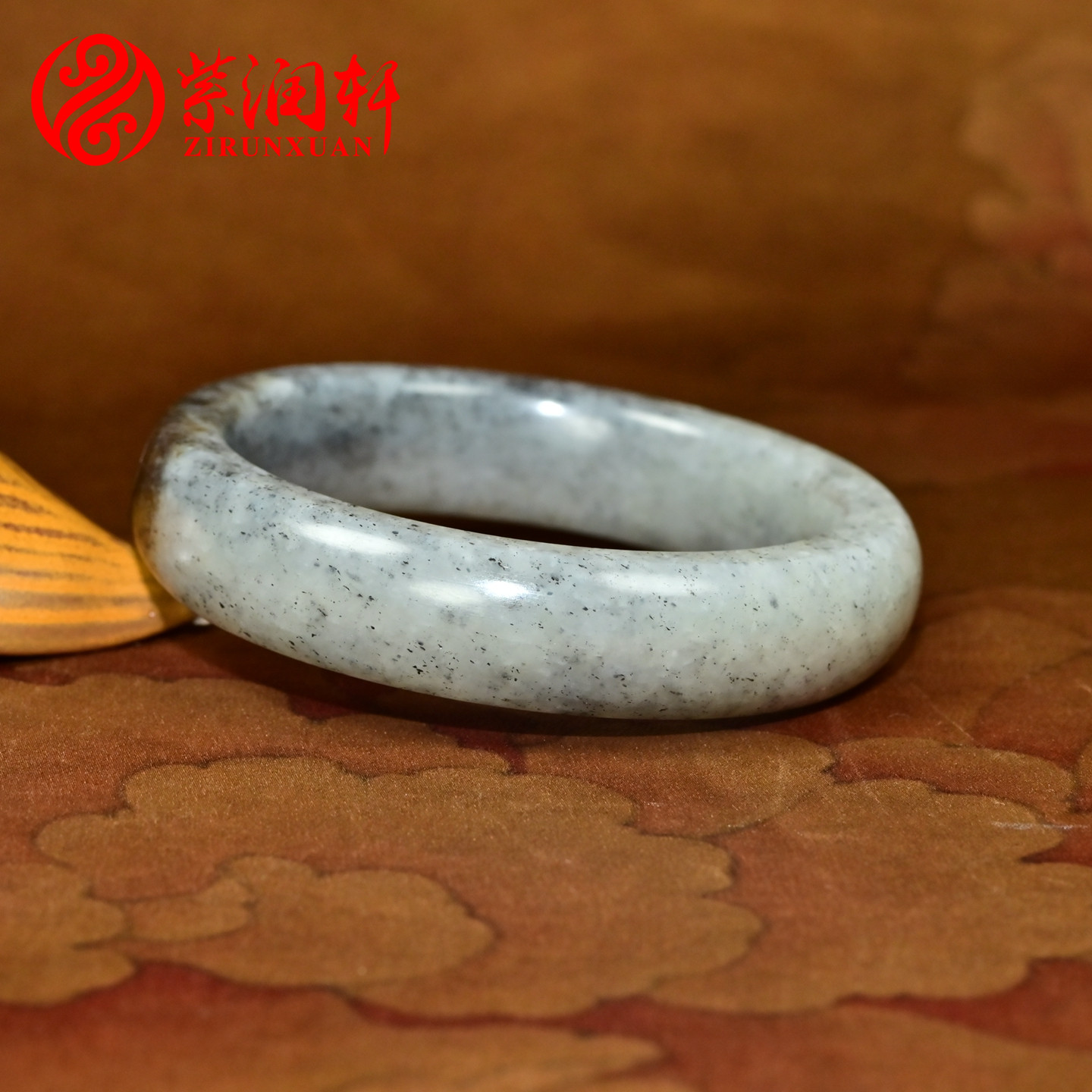 紫润轩新疆和田玉籽料青花手镯聚黑皮58 5MM点墨飘墨籽镯珍品级