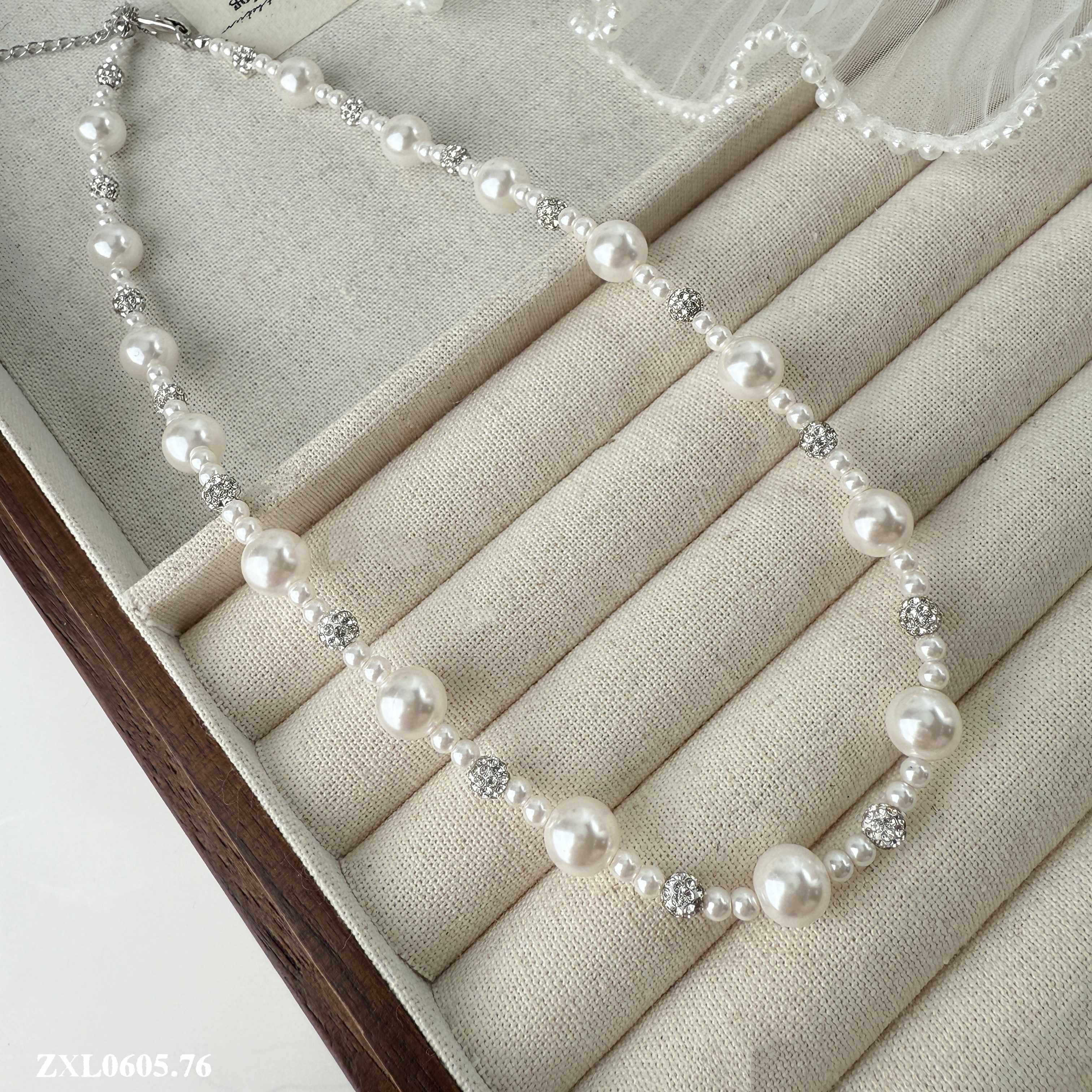 丽银新款镶钻珍珠项链女轻奢高级感小众设计感锁骨链劲链气质百搭