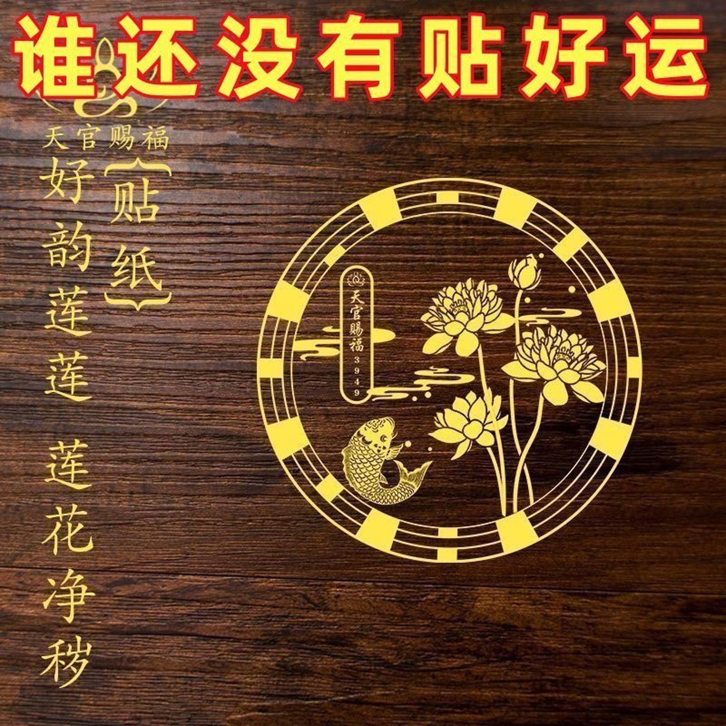 荷花鲤鱼净秽图好运连连厕所厨房荷花贴画卫生间莲花锦鲤防水贴纸
