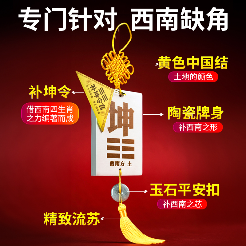 陶瓷坤卦牌西南缺角化解摆件坤卦补角牌坤挂坤字坤位房屋缺角坤位