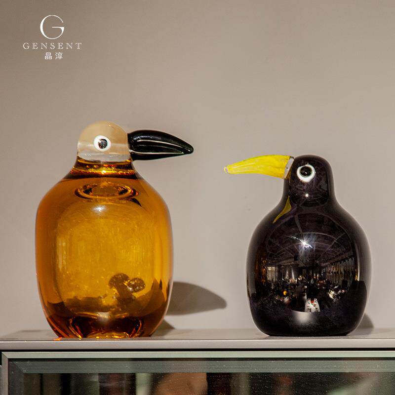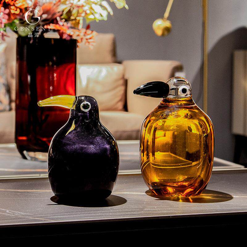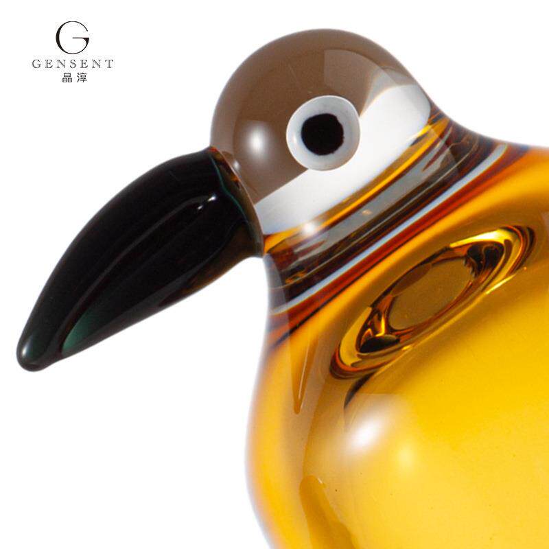 晶淳 厚重款彩色小鸟桌面摆件 琥珀色黑色复古撞色吹制玻璃工艺品