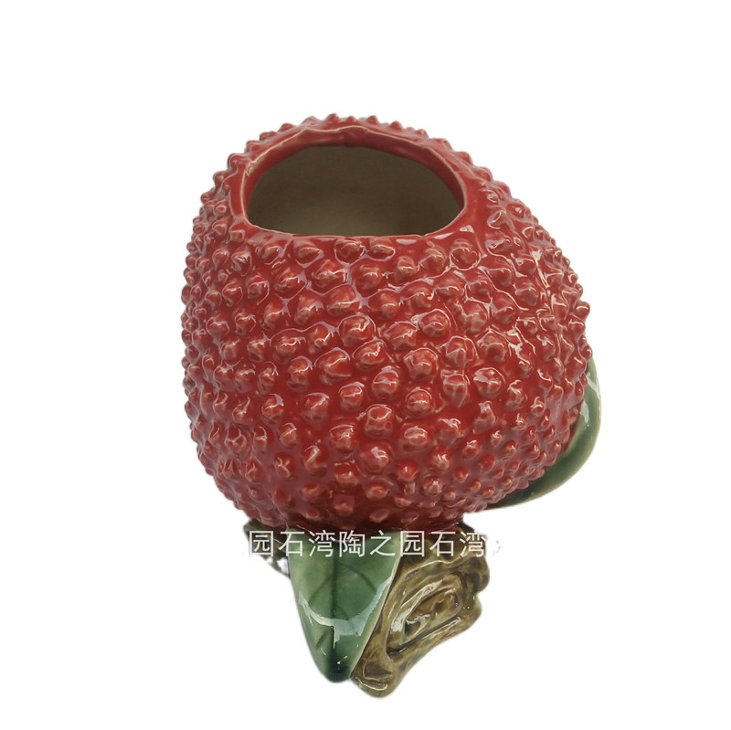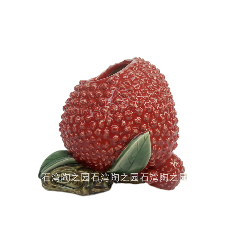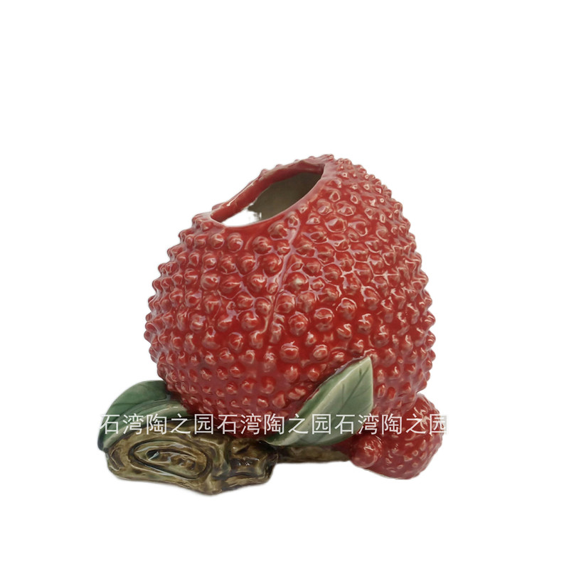 石湾陶瓷公仔家居装饰摆件喜庆90后中式岭南佳果大红荔枝桌面花瓶