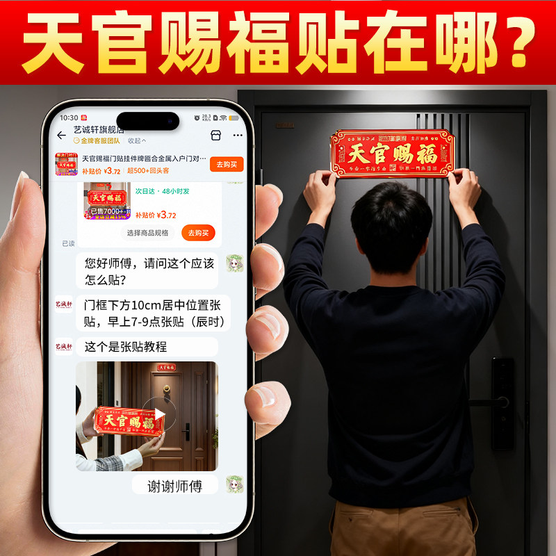 天官赐福门贴解决大门对邻居门电梯卧室宅官方旗舰店铜金属镇牌匾