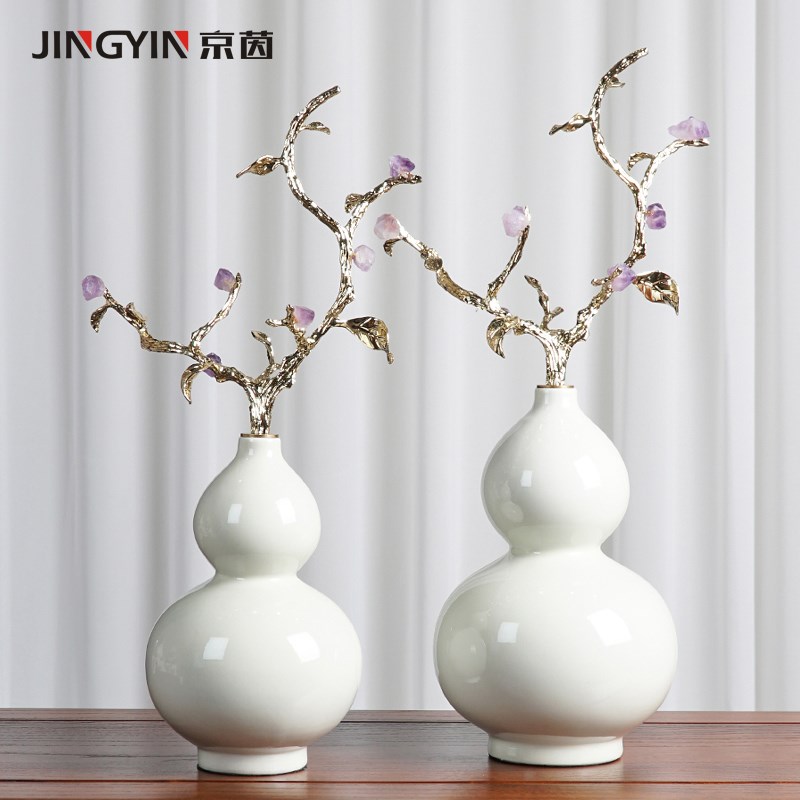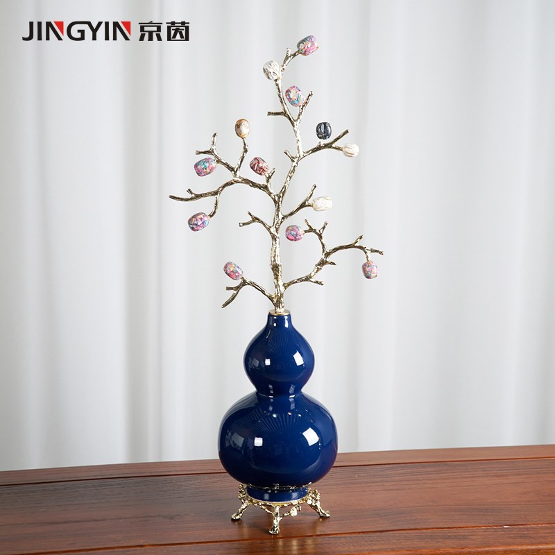 福禄如意陶瓷葫芦摆件中式家居客厅酒柜办公室装饰品乔迁新居礼品