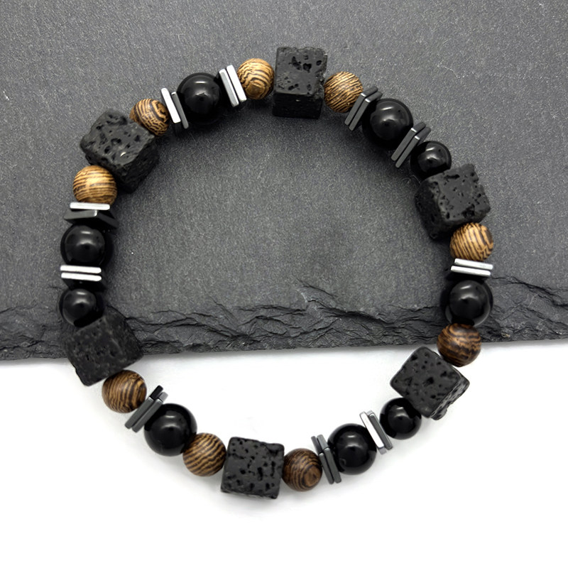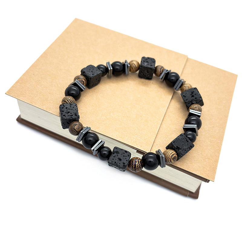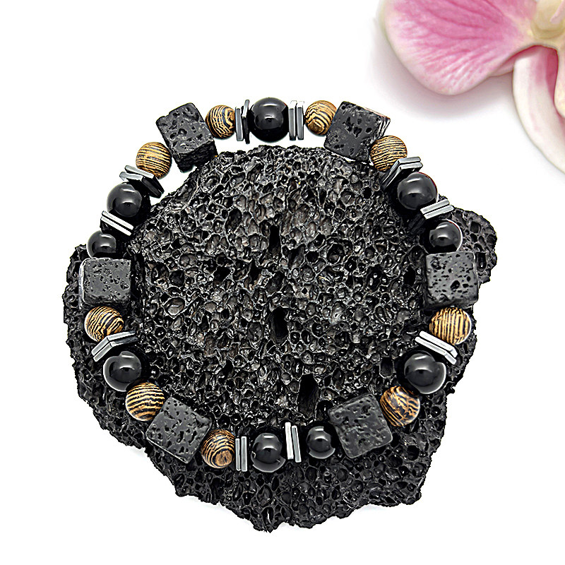 跨境熔岩方块火山石手链鸡翅木珠手环弹力手串