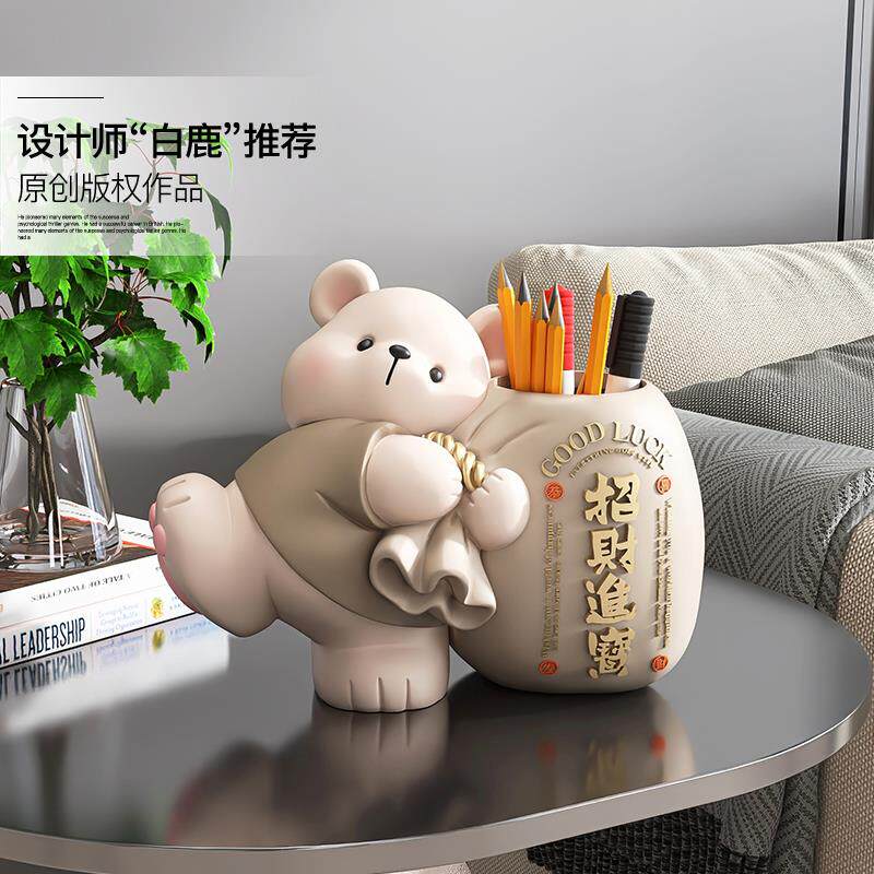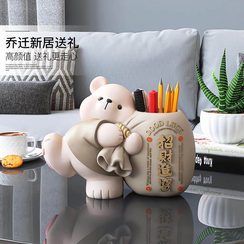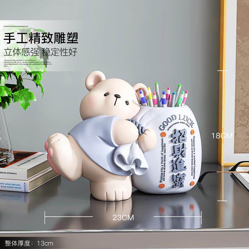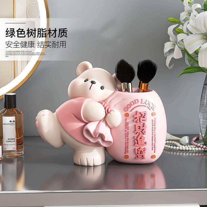 创意卡通熊笔筒摆件化妆刷口红收纳盒客厅家居饰品儿童房生日礼物