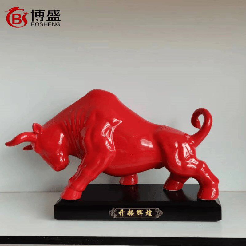 红色大水牛陶瓷十二生肖牛业礼品招财办公装饰新款华尔街牛