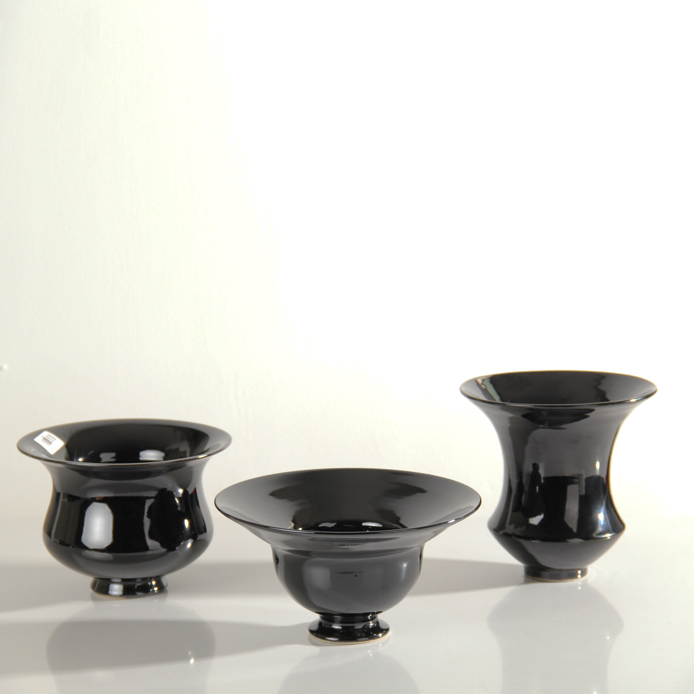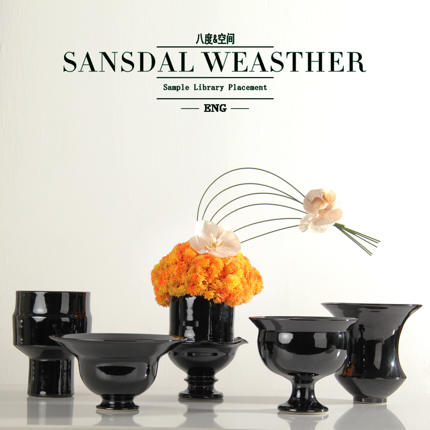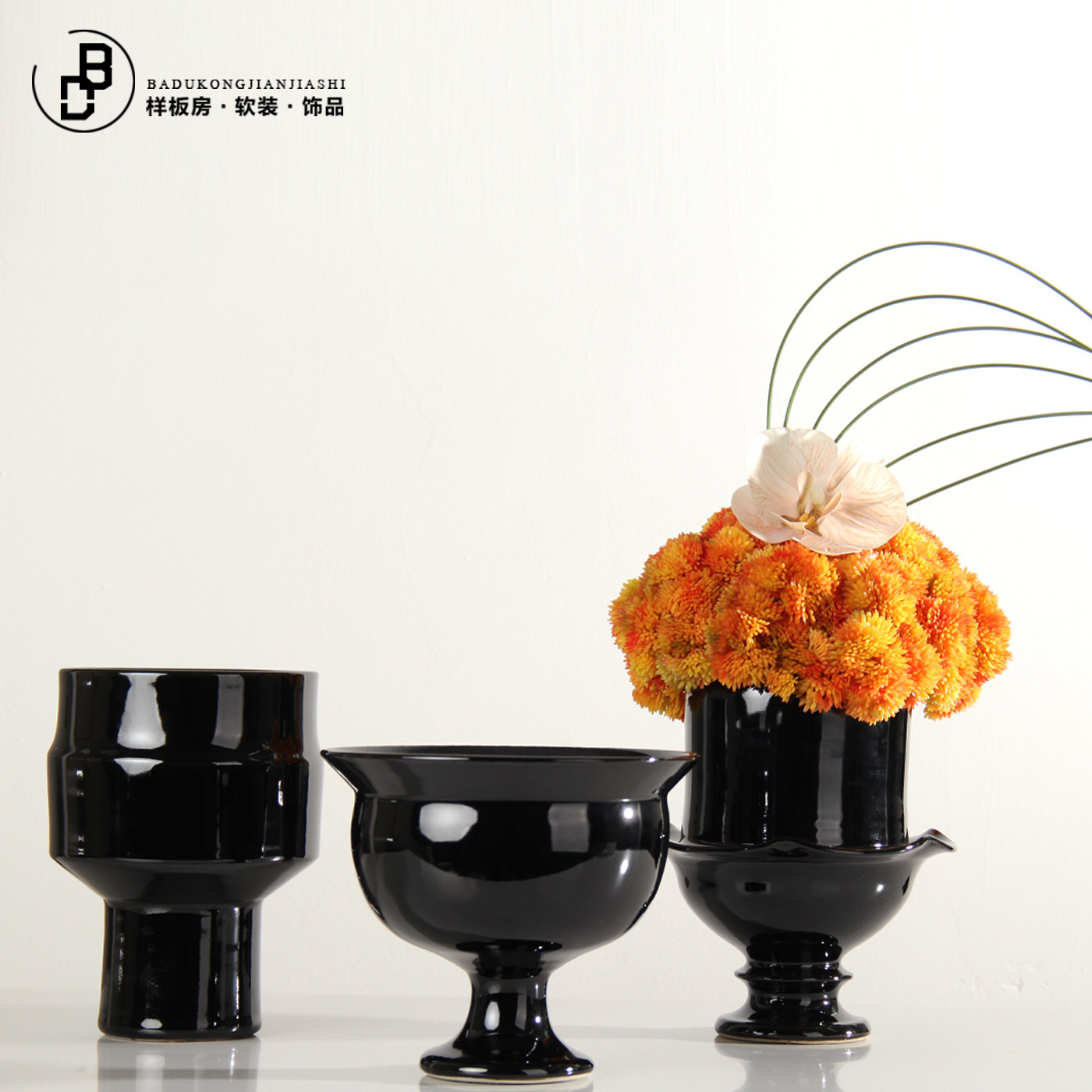黑色亮光陶瓷花瓶样板房餐桌花器花插花艺侘寂风中古风软装饰品