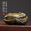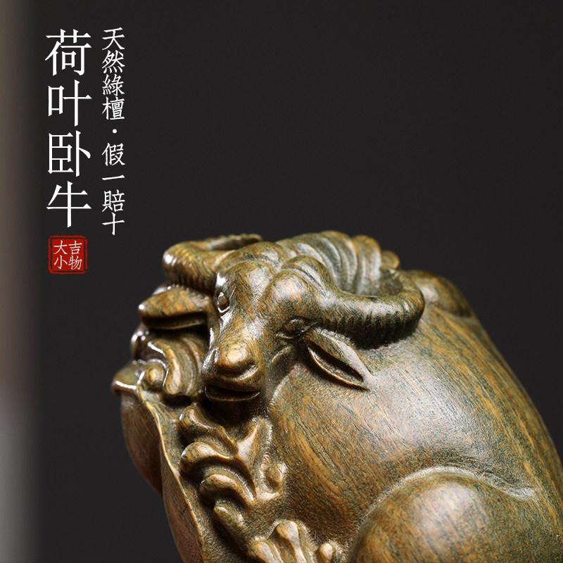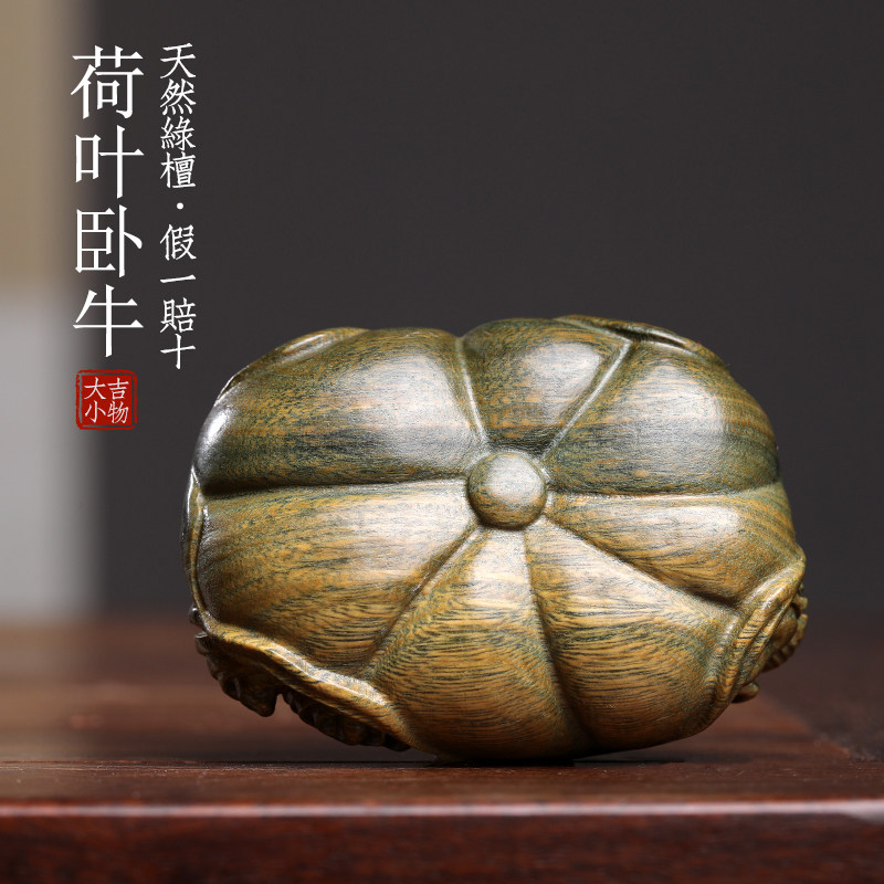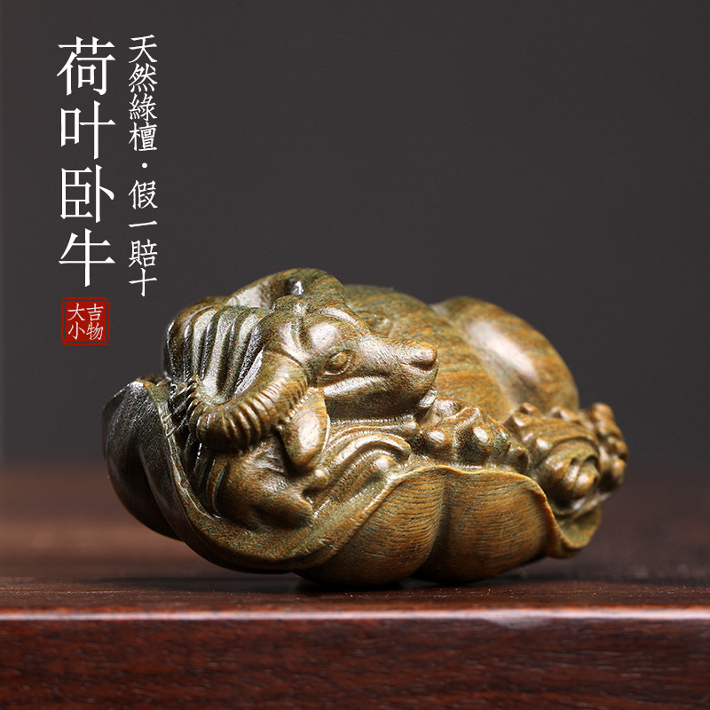 天然绿檀檀香木荷叶卧牛水牛木雕手把件生肖牛摆件文玩桌面小摆件