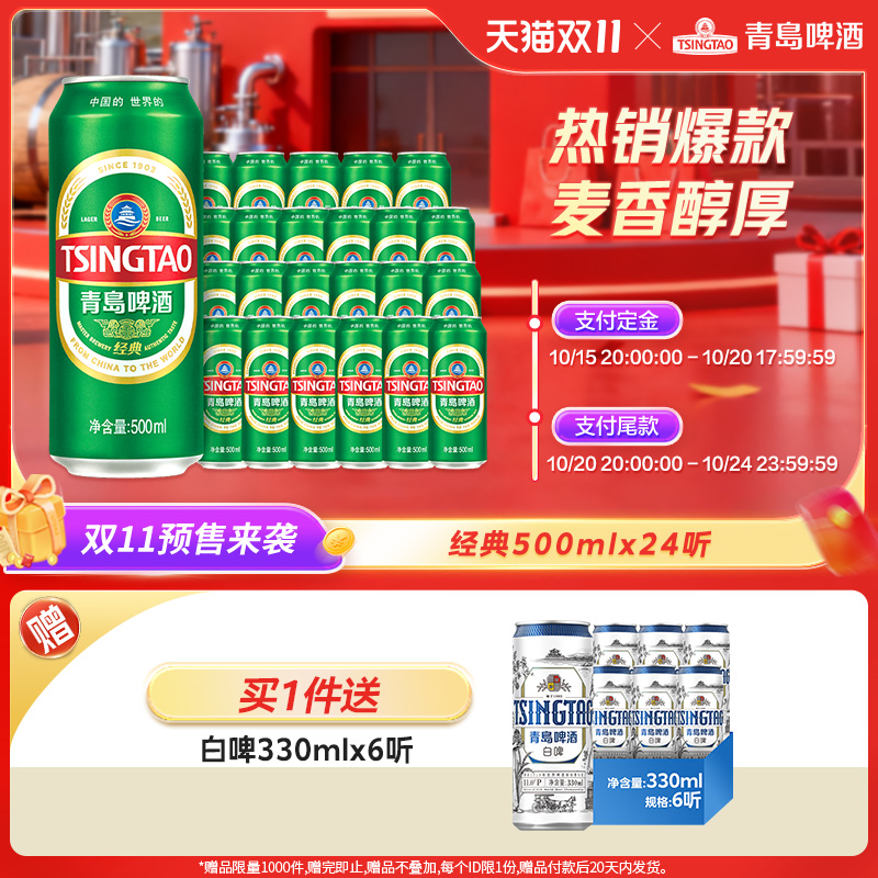 青岛啤酒经典500ml*24听官方直营