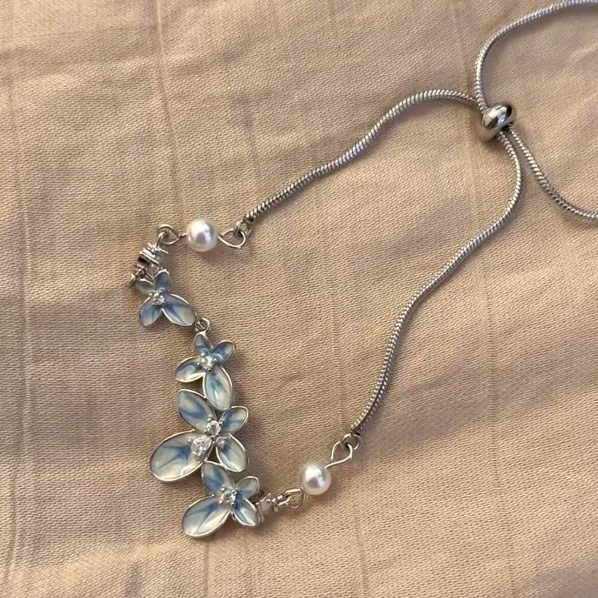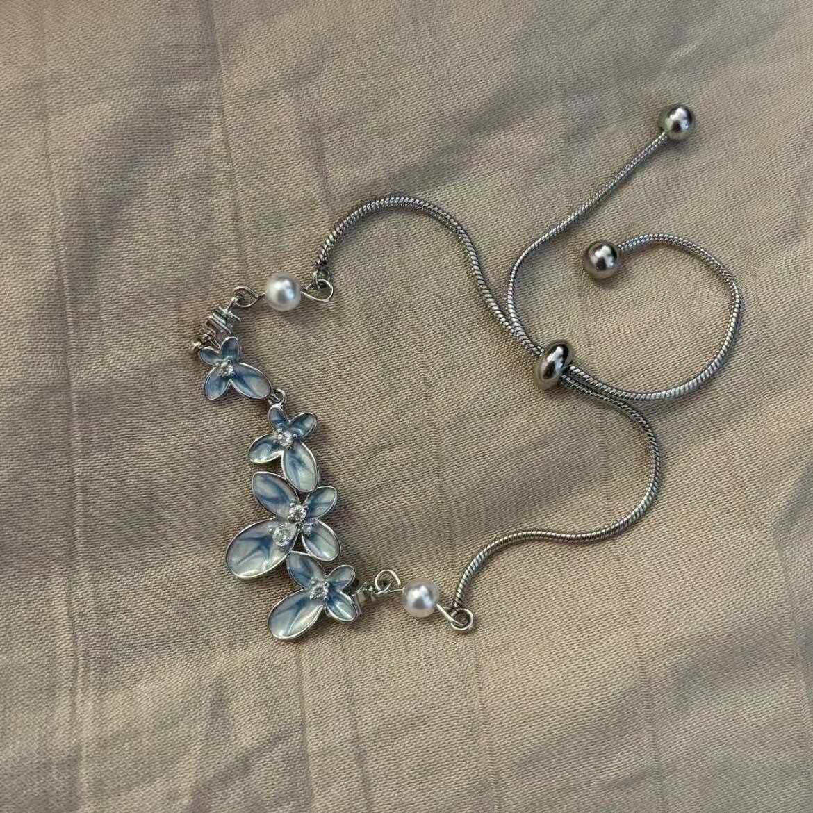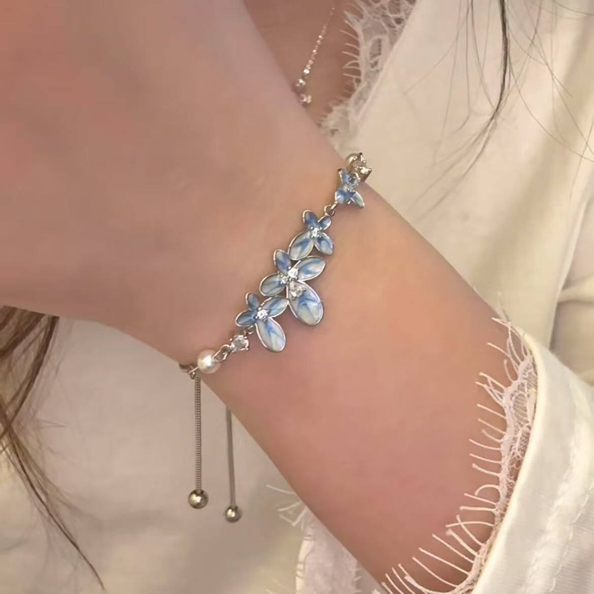 蓝色渐变珐琅花朵手链2025新款可抽拉精致百搭手饰小众设计感手环