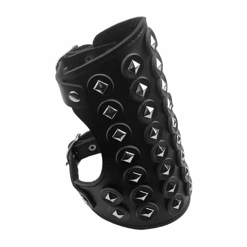 黑柔软圆盘皮灰色蘑菇钉闪耀星星朋克风手链饰品护腕式手镯大手带