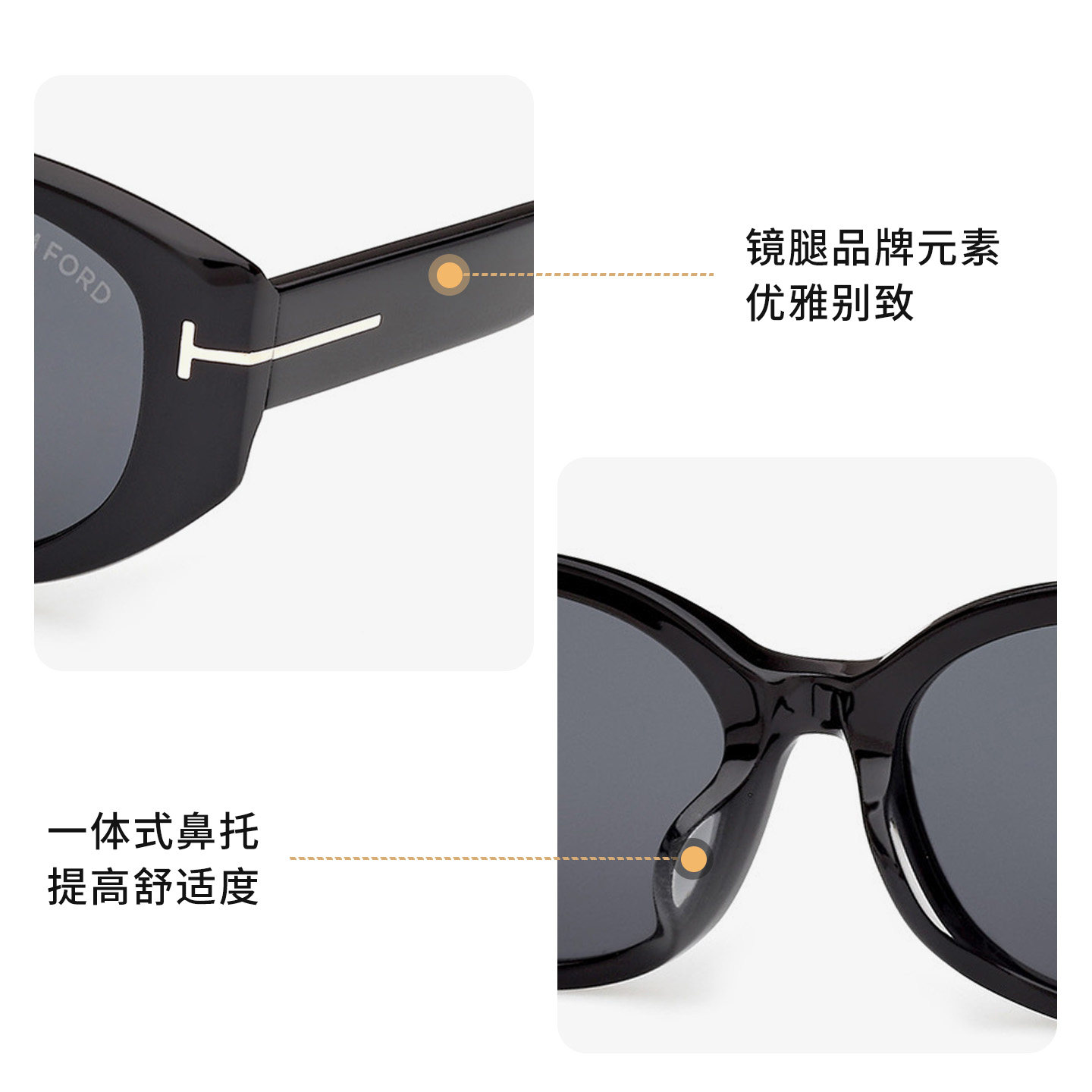 【自营】TOM FORD太阳眼镜 女士新款复古猫眼高级感墨镜 FT1295-K