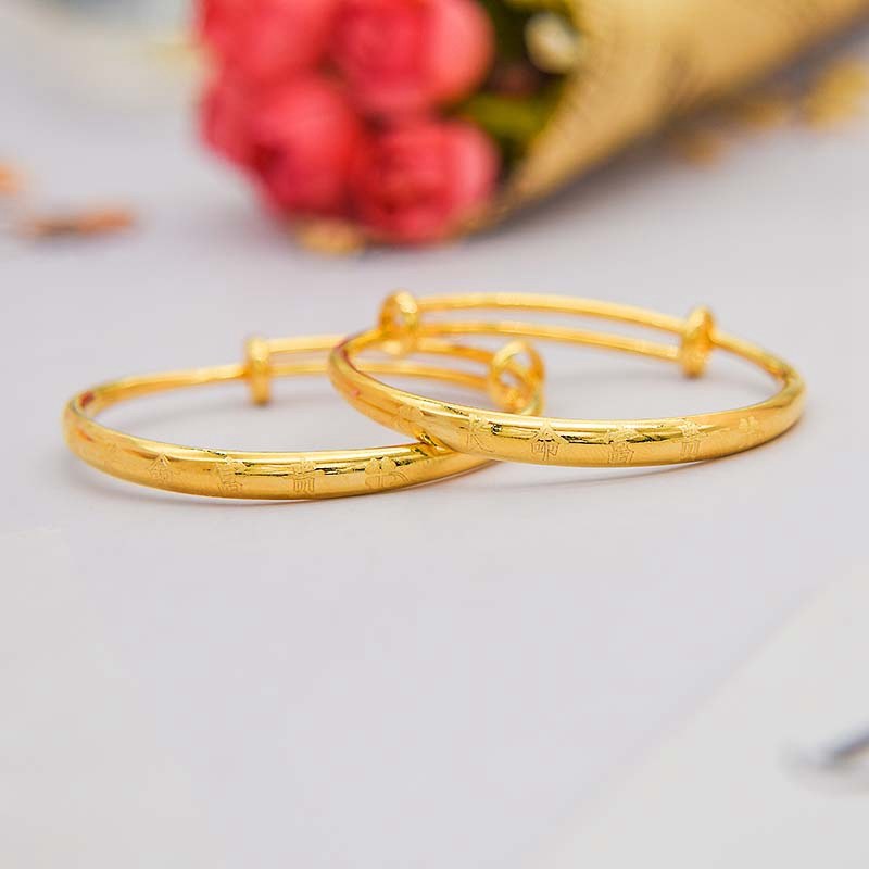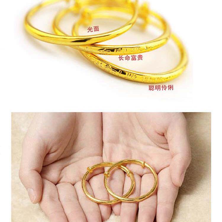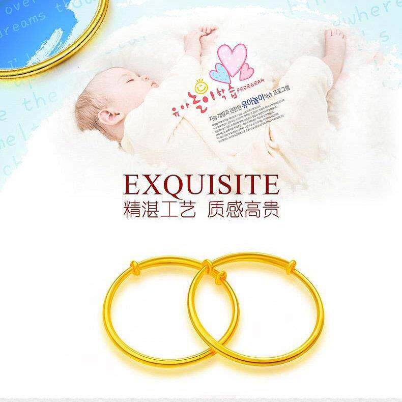 推拉光面宝宝手镯儿童婴儿足金包银镯子一对满月百天可调节周岁礼