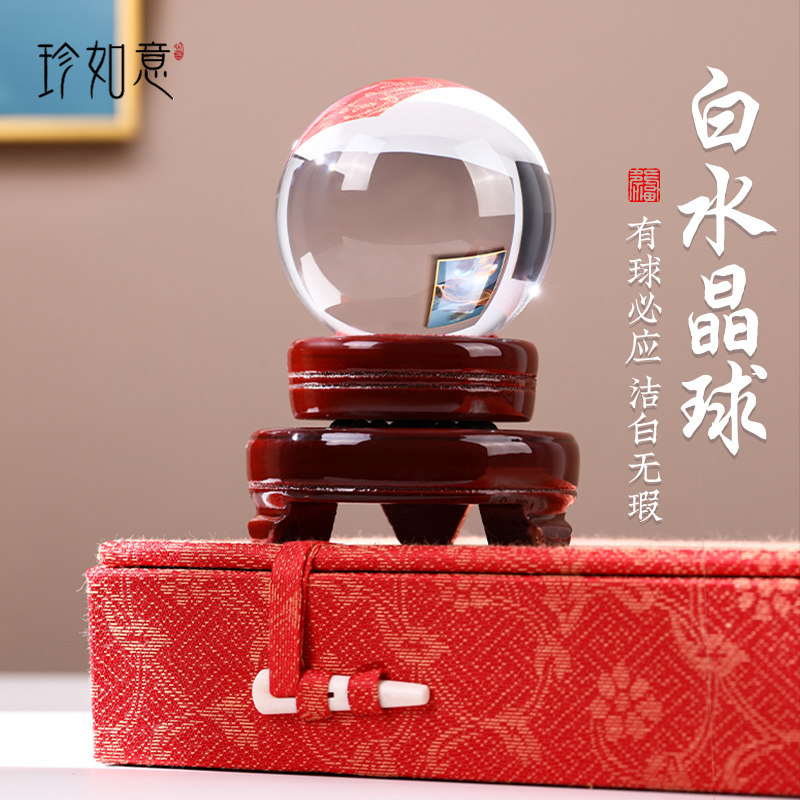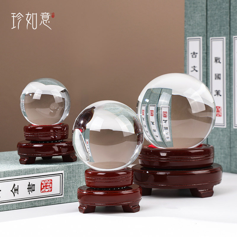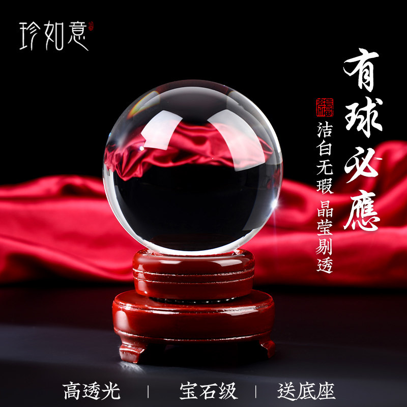 珍如意白色水晶球摆件透明圆球红粉黄玻璃球装饰品客厅办公桌家居