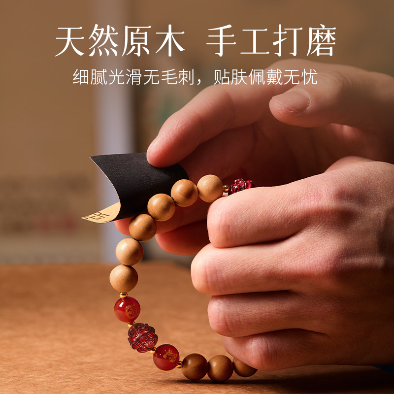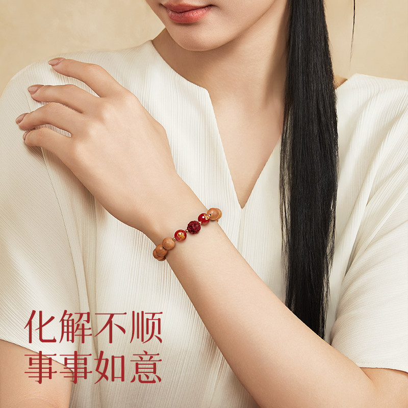 庆祥泰真品天然桃木手串女士属马朱砂三合六合生肖本命年男款手链