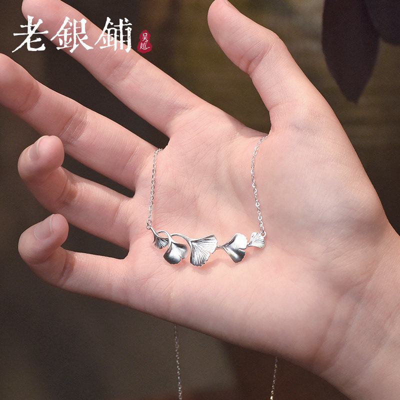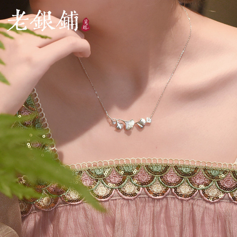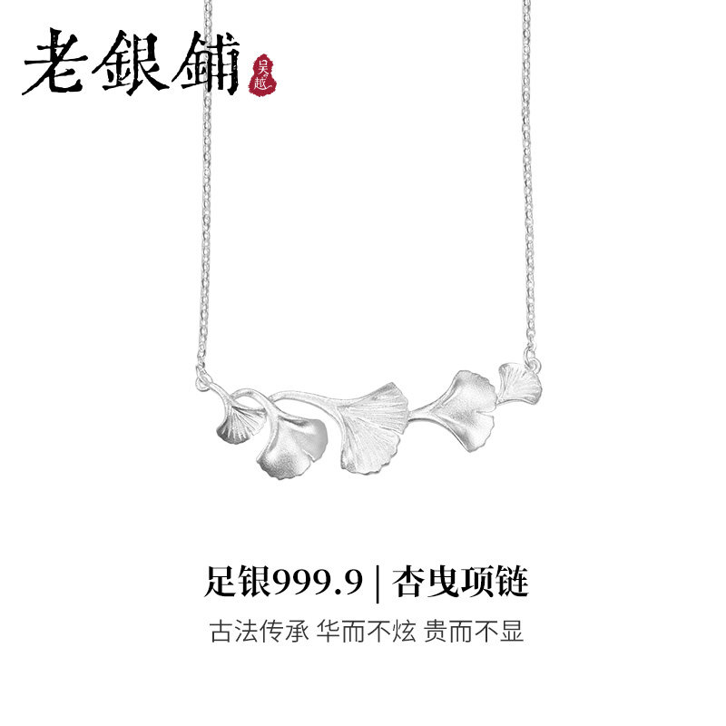 吴越老银铺足银999.9杏曳项链银杏中国风锁骨链低调古法简约ins