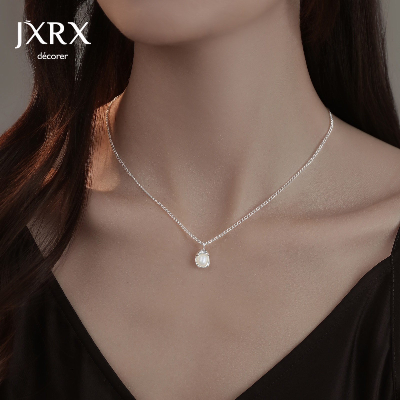 JXRX轻奢高级感贝壳项链女款2025新款颈链锁骨链单颗天然珍珠吊坠