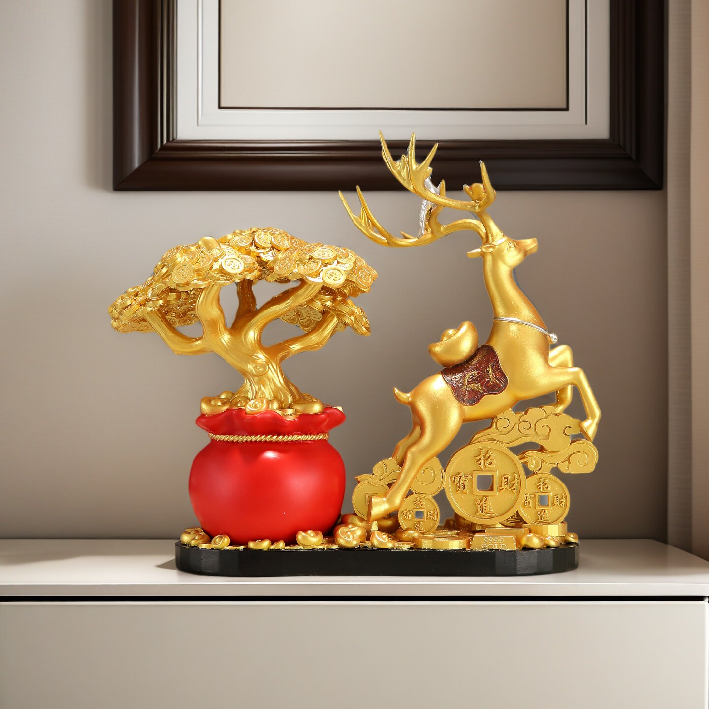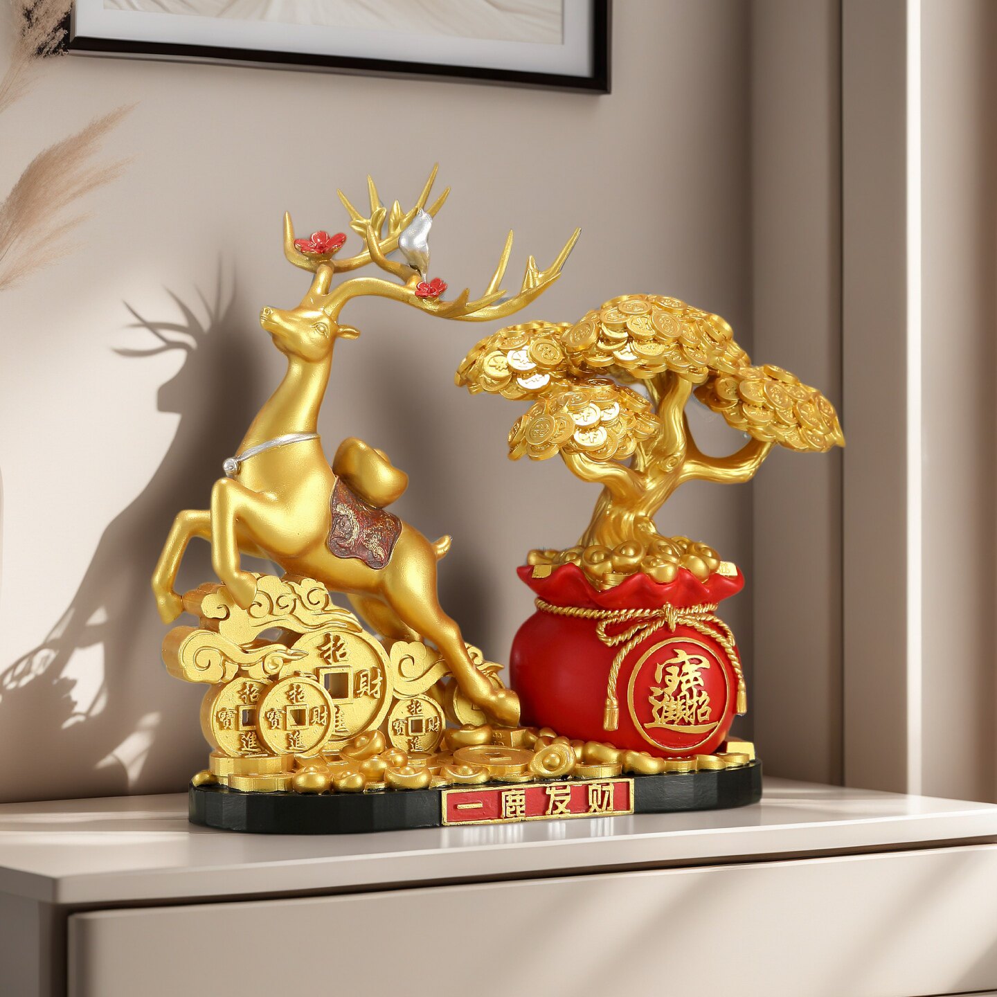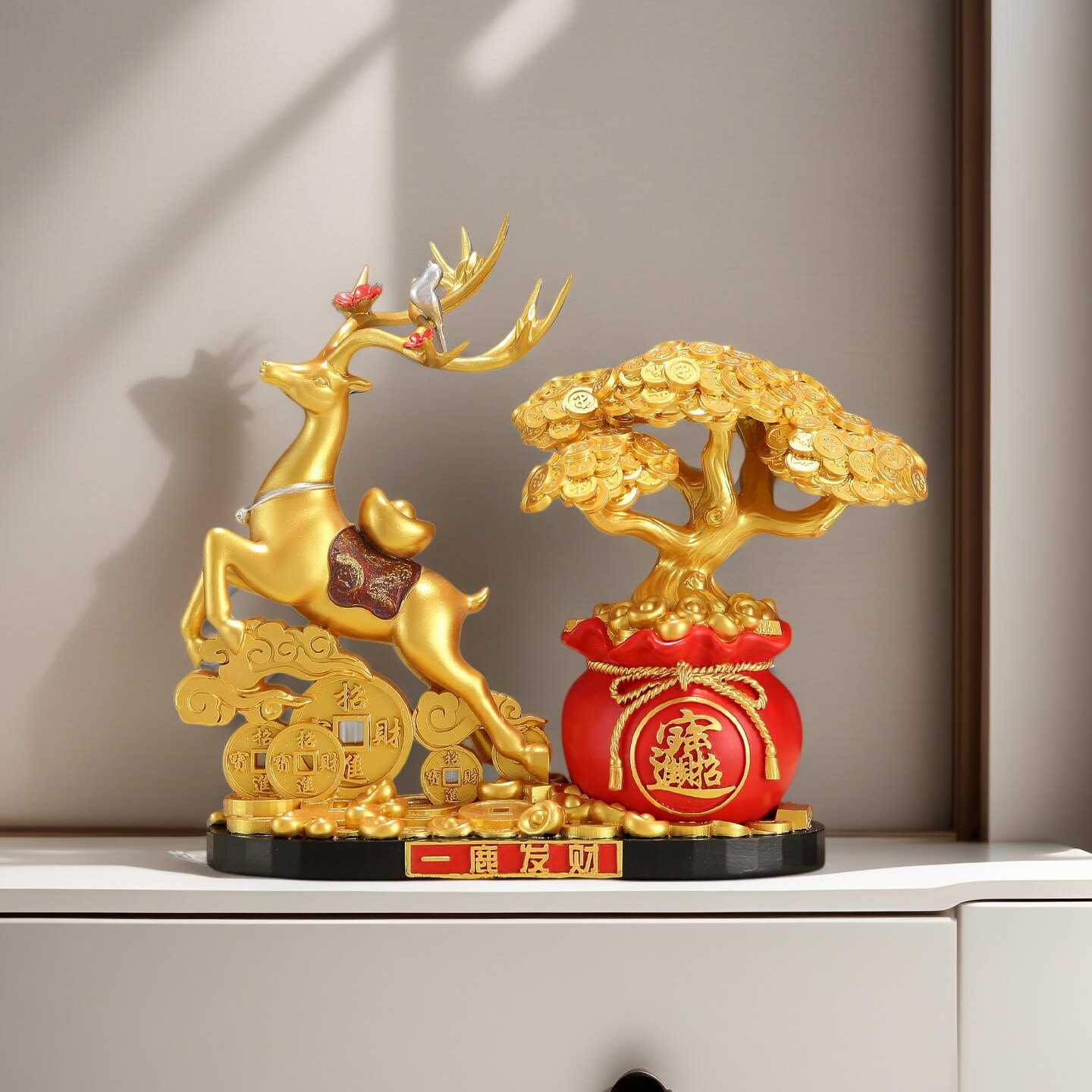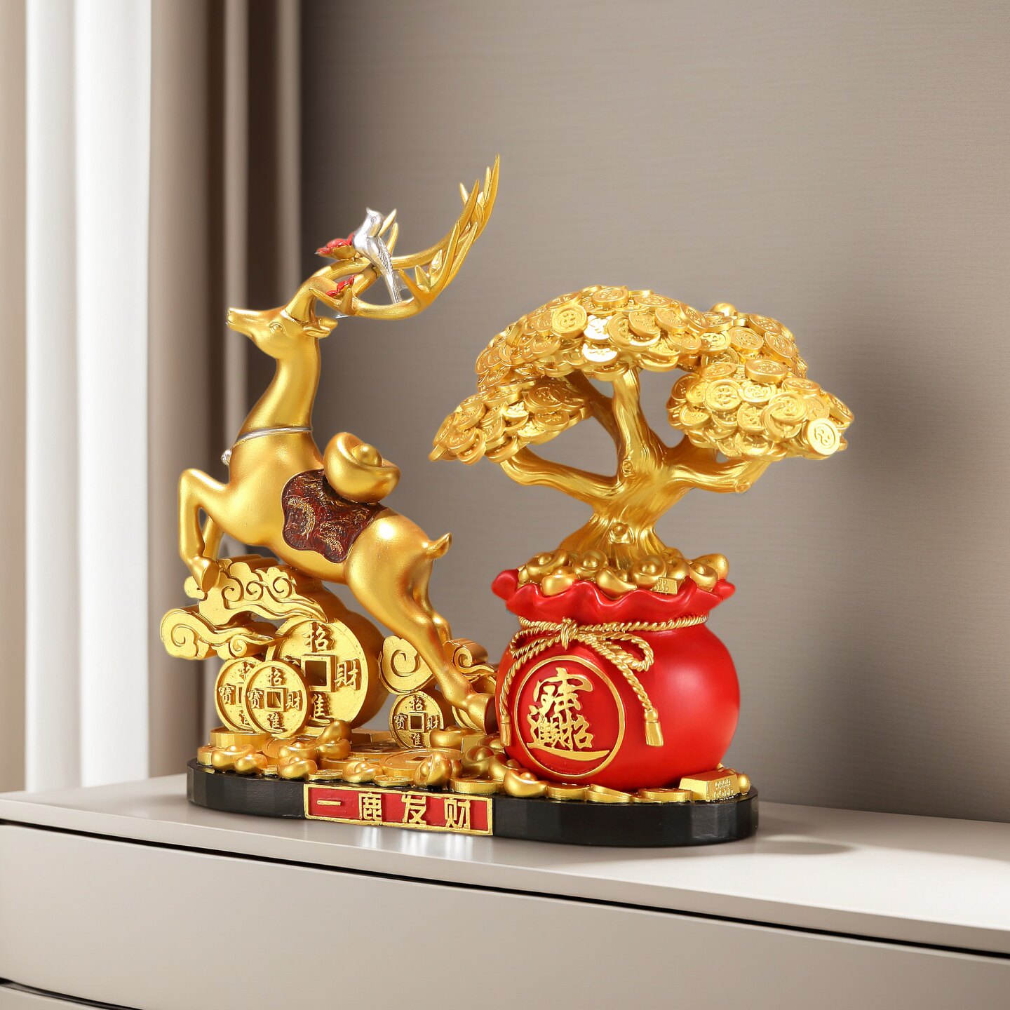 新中式招财鹿发财树摆件客厅酒柜玄关办公室招财进宝工艺品装饰