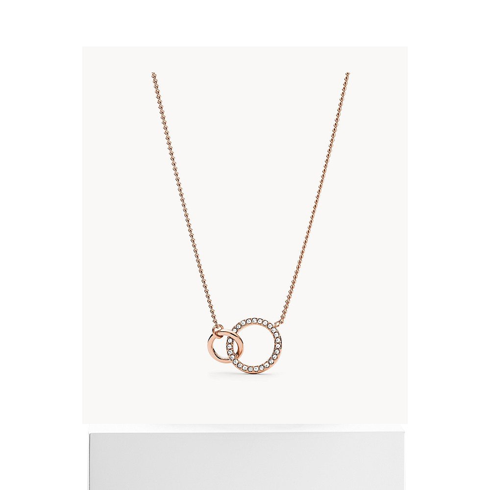 自营 Fossil 女士玫瑰金不锈钢吊坠项链 粉红色配饰 美国奥莱直发