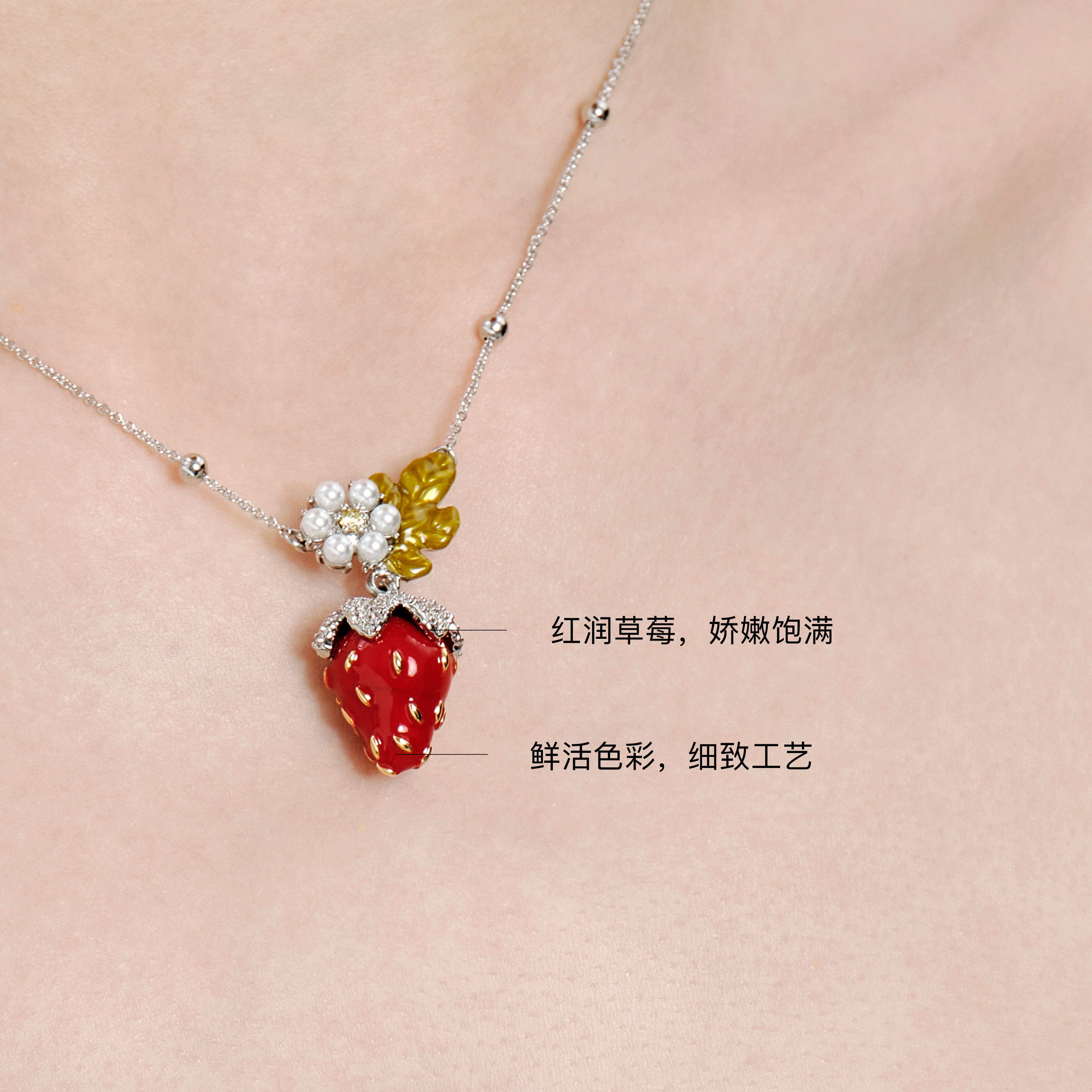【王玉雯同款】GdV水果系列珐琅珍珠草莓女款项链多巴胺可爱设计