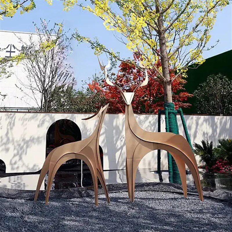 金属梅鹿雕塑园林景观抽象售楼部草坪房地产小区装饰