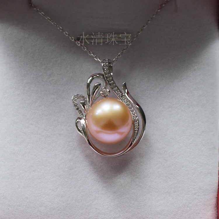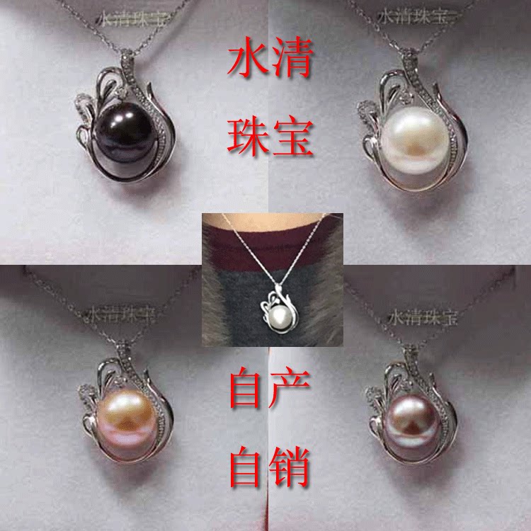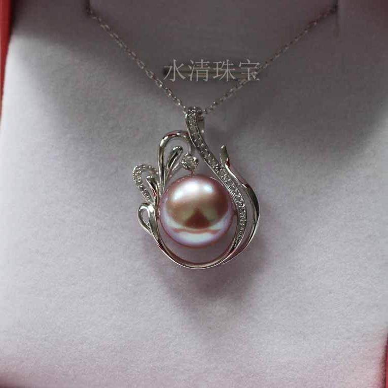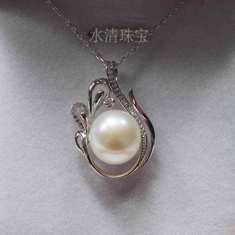 天然淡水珍珠项链12-13mm强光白色扁圆珠吊坠锁骨链S925纯银饰品