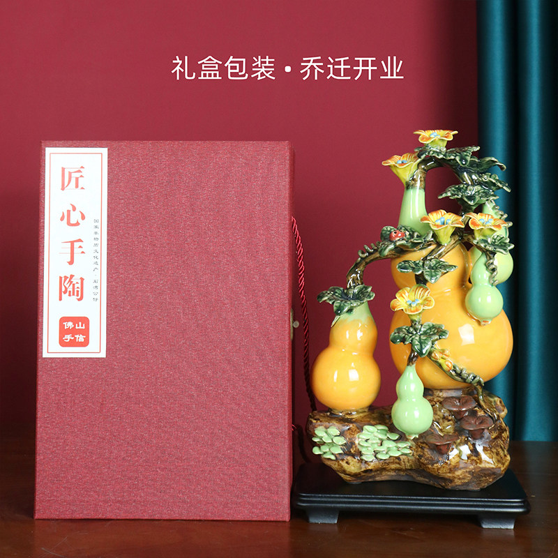 五福临门陶瓷葫芦摆件五代同堂装饰中式手工开业乔迁礼品石湾公仔