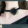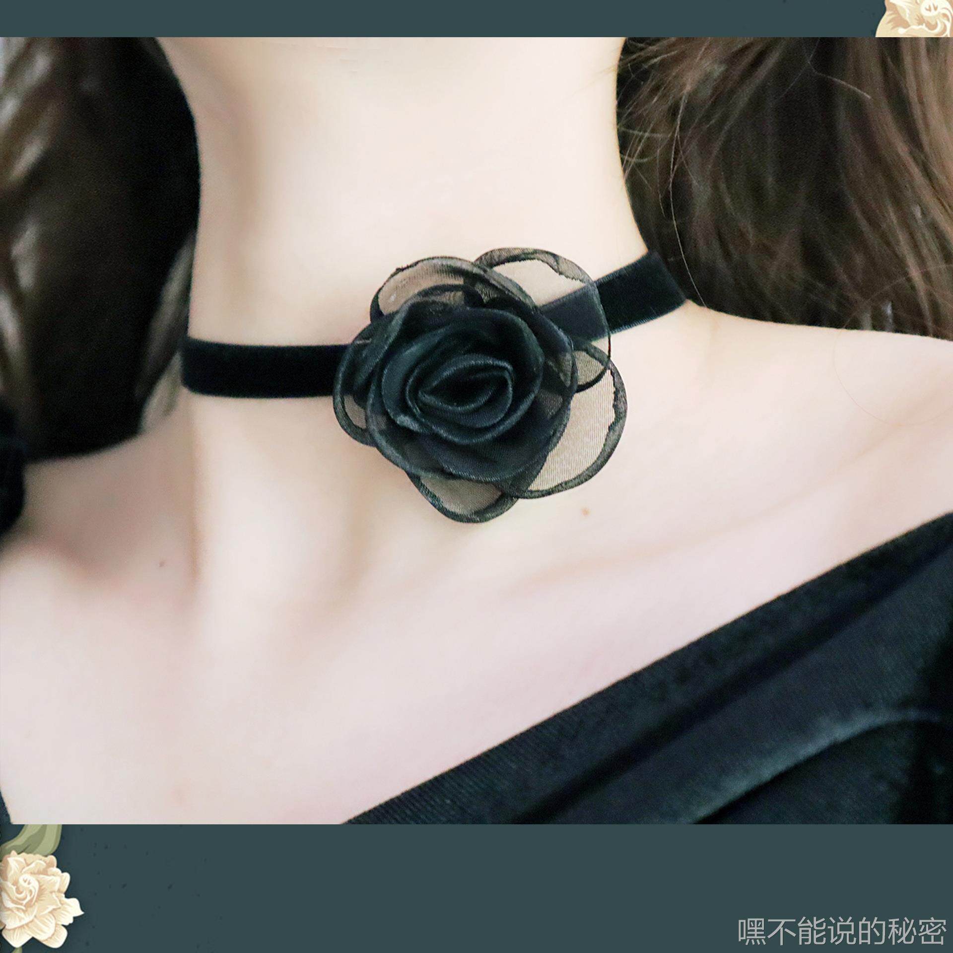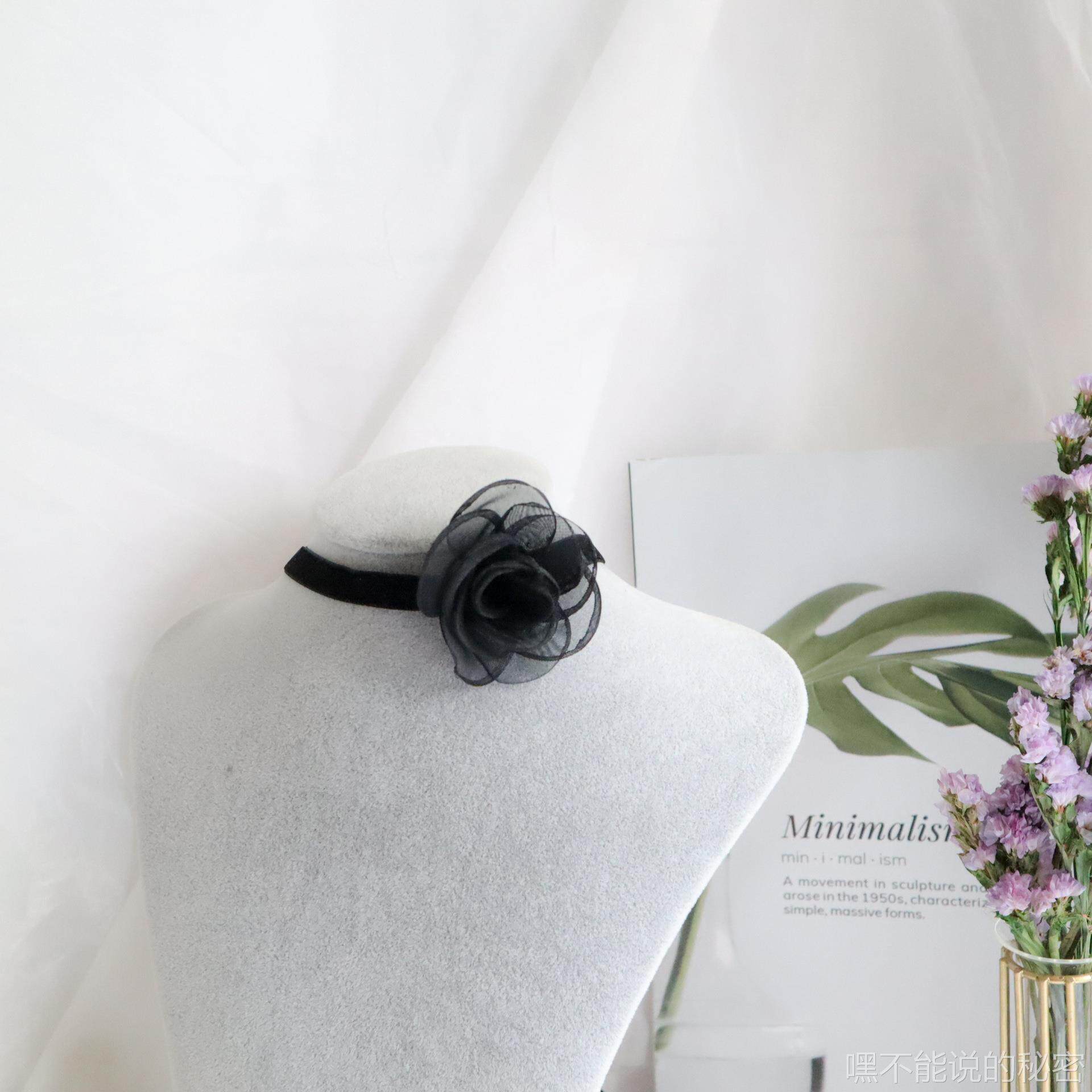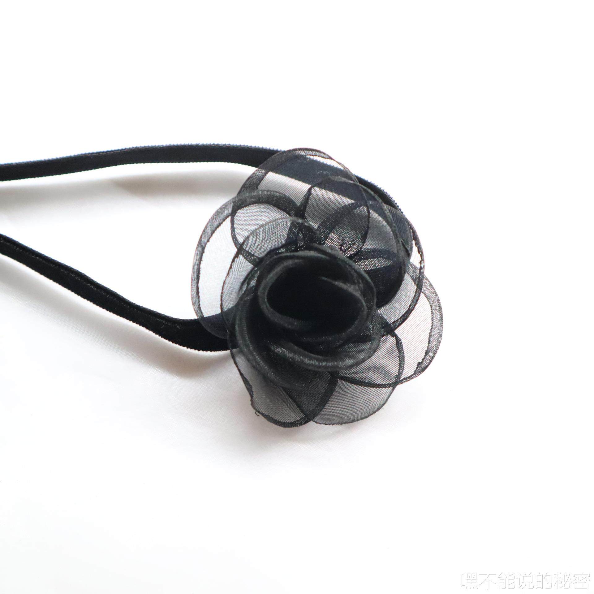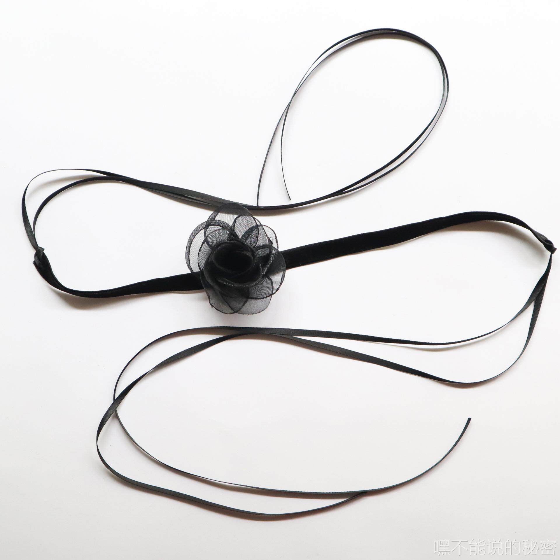 日韩风超仙女黑色山茶花蝴蝶结系带性感颈带Choker锁骨链纯欲项链