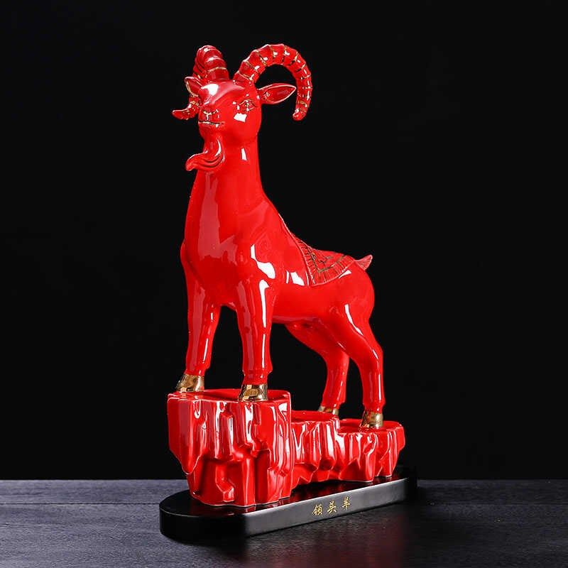 陶瓷生肖羊红色招财开运领头羊摆件电视柜办公室玄关摆设品