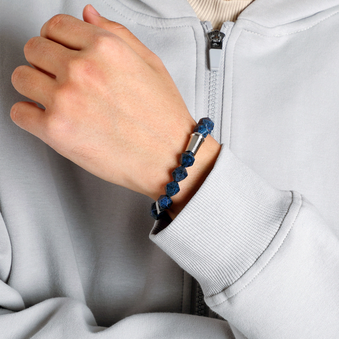 TIMORY咖啡系列天然蓝线石手链男士 女定制刻字蓝色宝石情侣手串