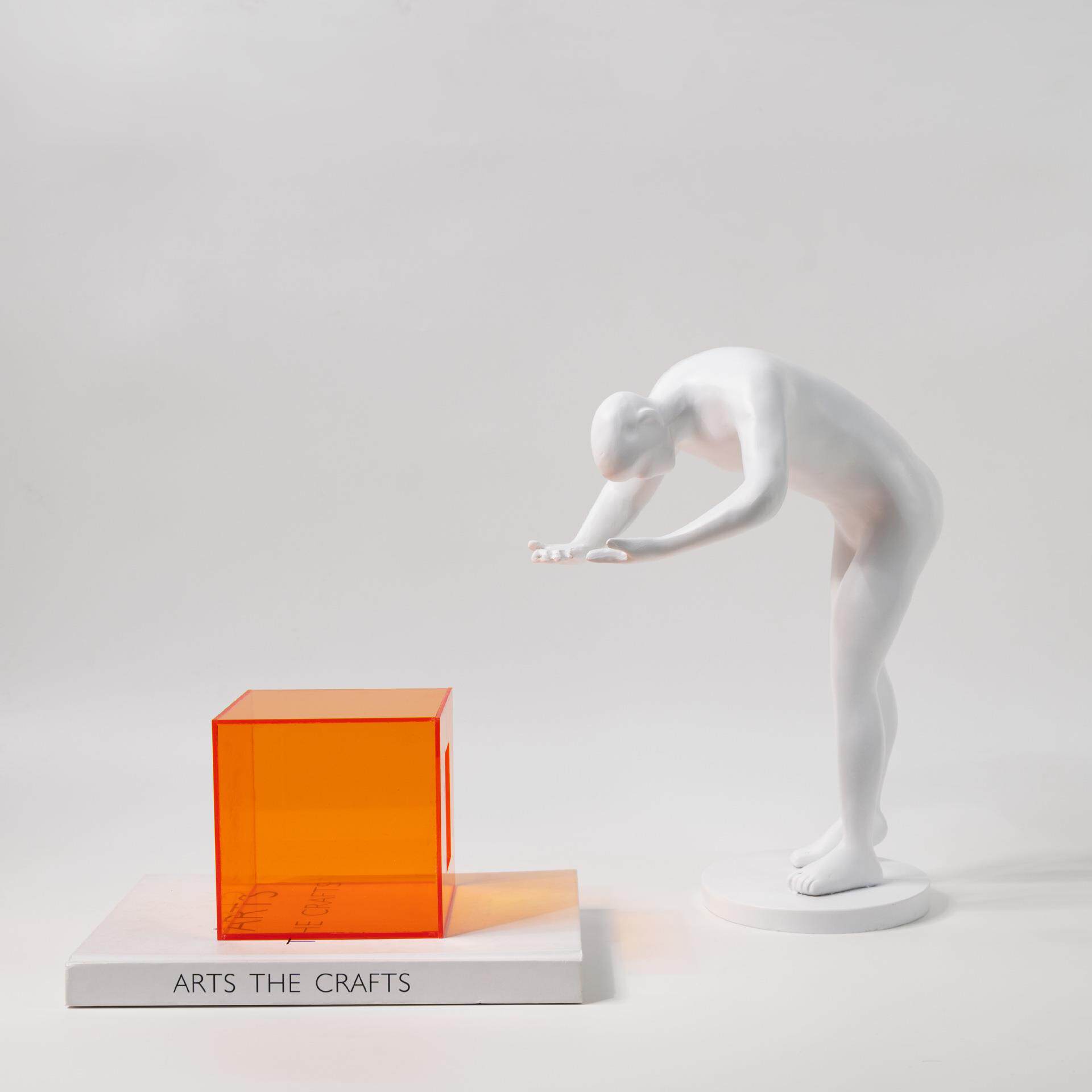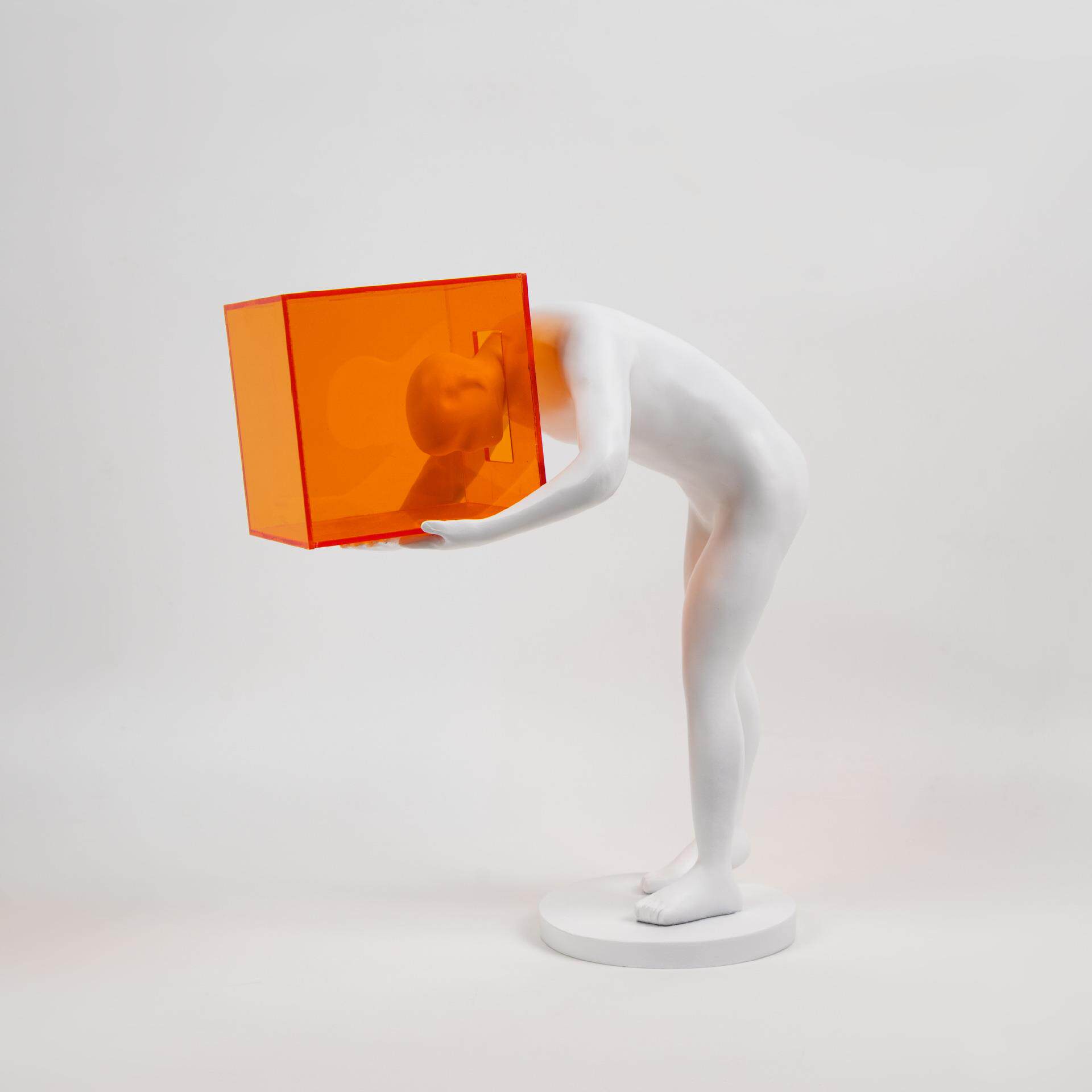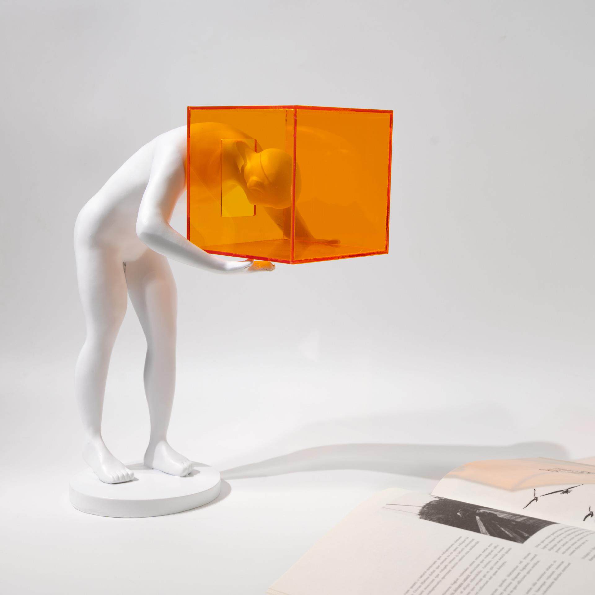 现代简约亚克力橙色囚笼人物雕塑树脂摆件客厅玄关酒店家居装饰品