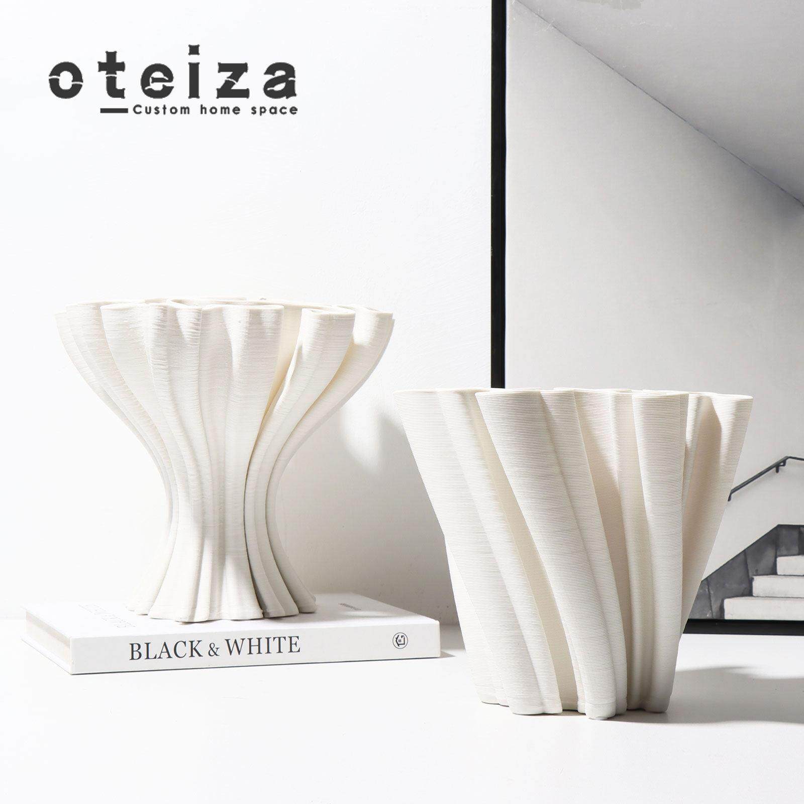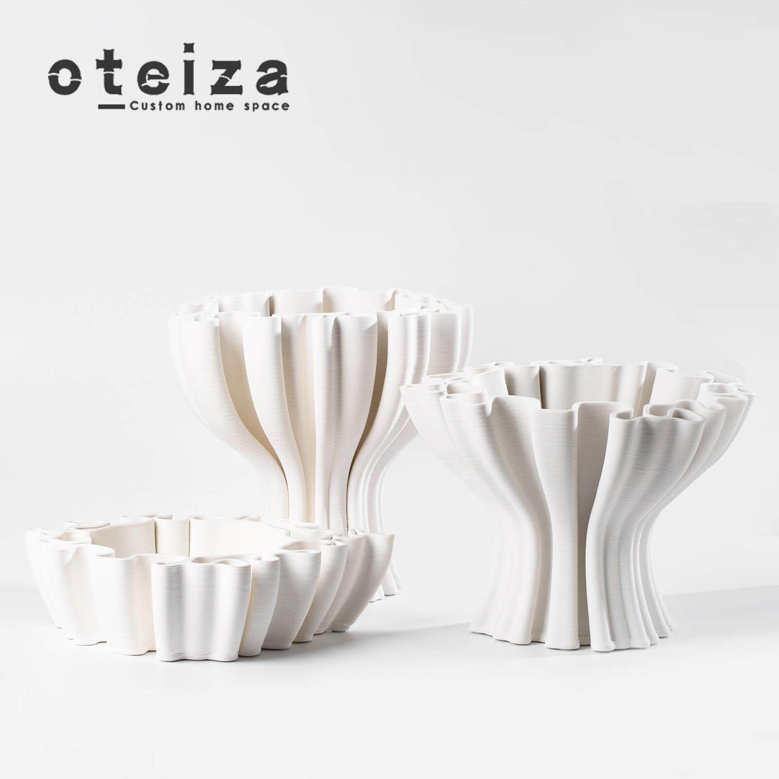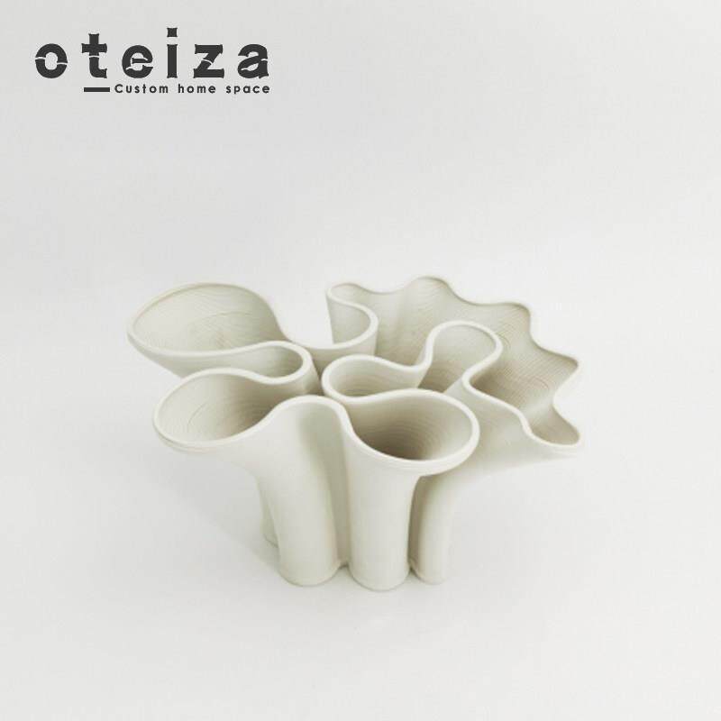 Oteiza现代简约样板间客厅茶几桌面摆件抽象扭曲陶瓷果盘白色花器