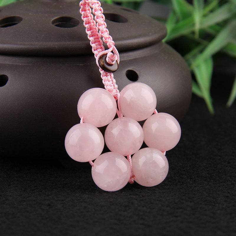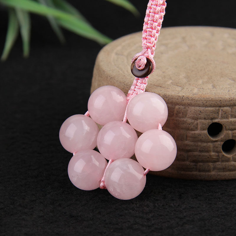 天然粉水晶七星阵球挂件钥匙扣手工编织男女饰品包挂泰山慈航阁