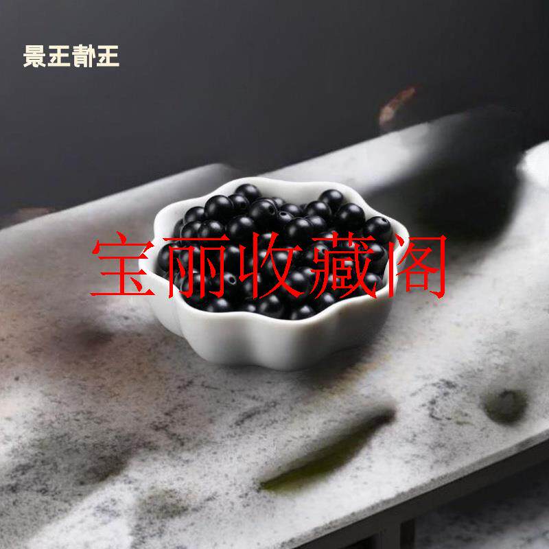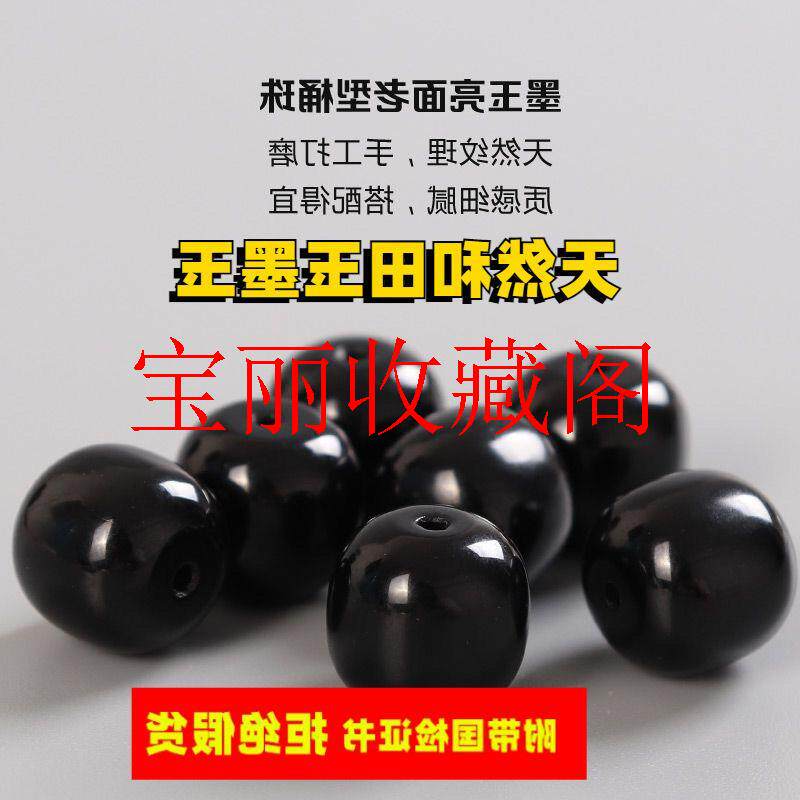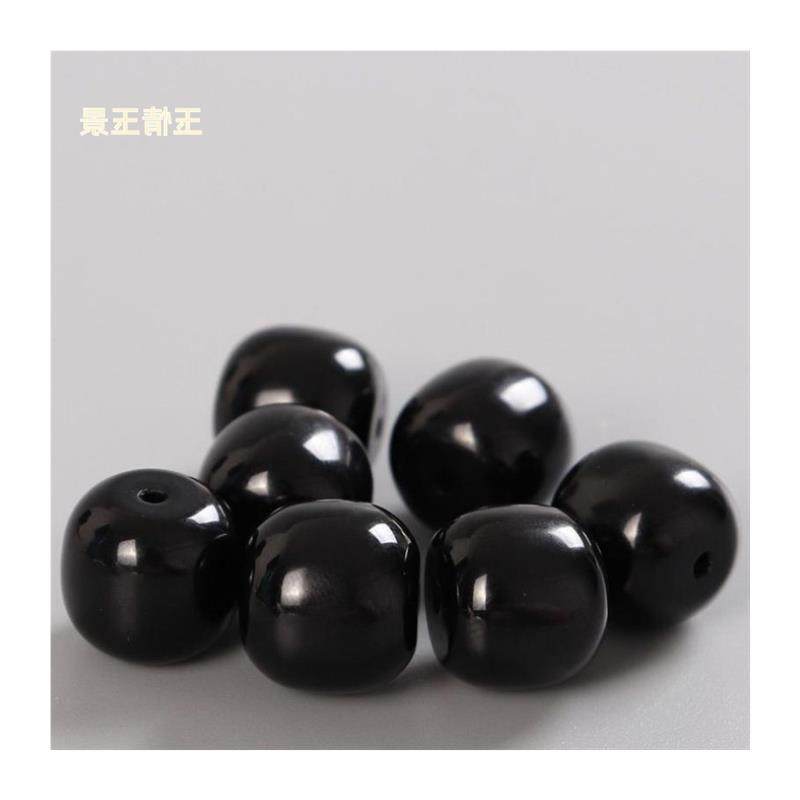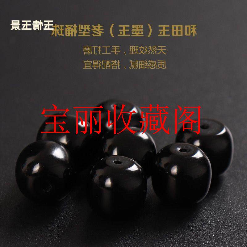 和田玉亮光墨玉老型珠文玩配饰隔珠单珠墨色亮光墩子黑羊脂玉散珠