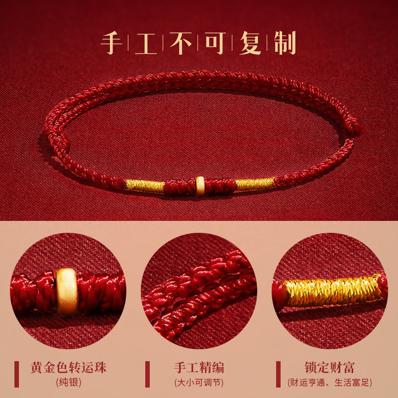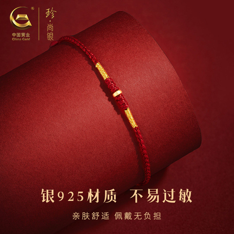 中国黄金珍尚银马年本命年红手绳女吉祥佩戴物生日礼物送女生s925