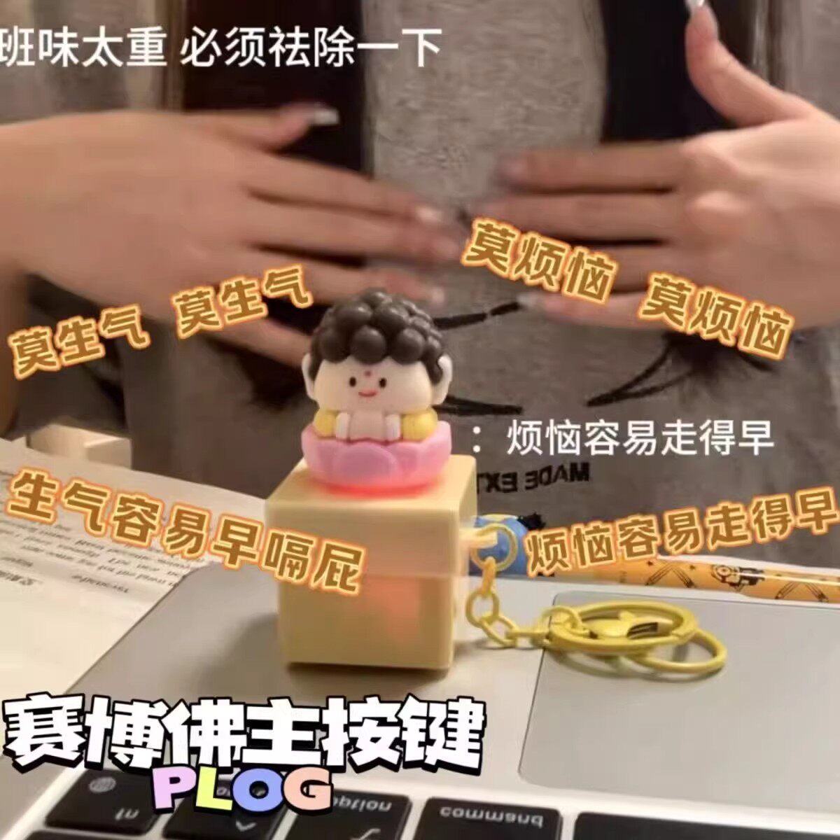 莫生气佛祖解压按键发声钥匙扣情绪稳定神器办公室摆件减压玩具