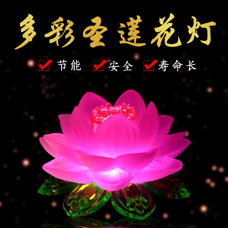 中华柱合金亚克力莲花灯神台灯七彩色供佛电子蜡烛led家用中式