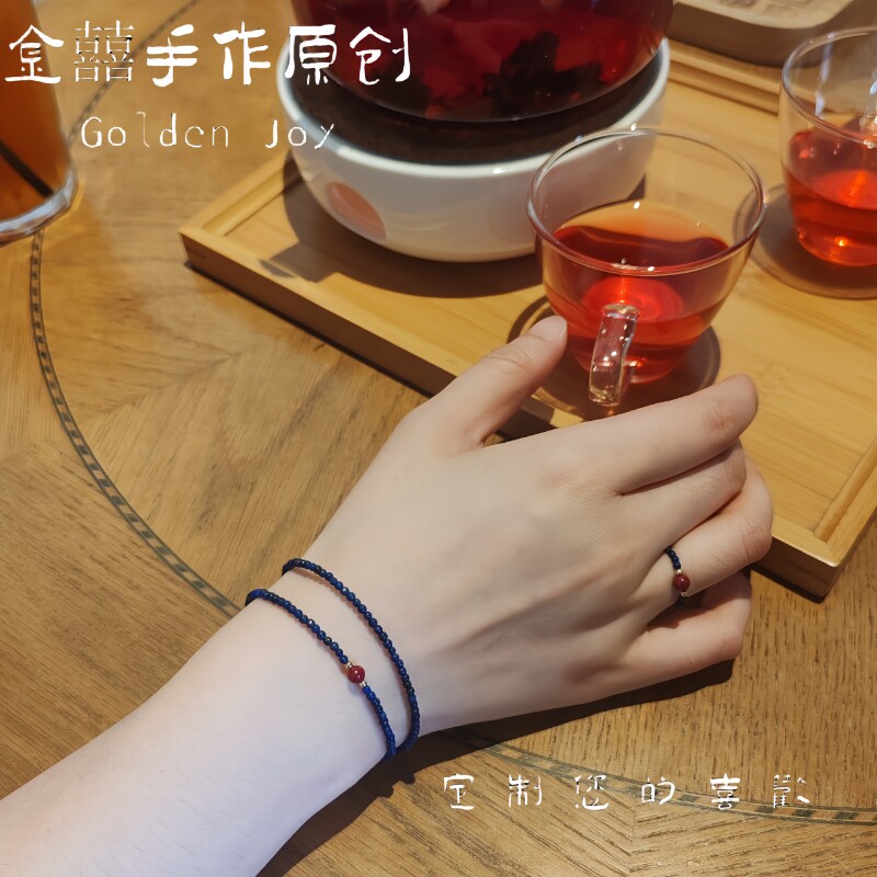 新中式原矿青金石小米珠朱砂转运双圈极细小众高级感蓝色手链手串