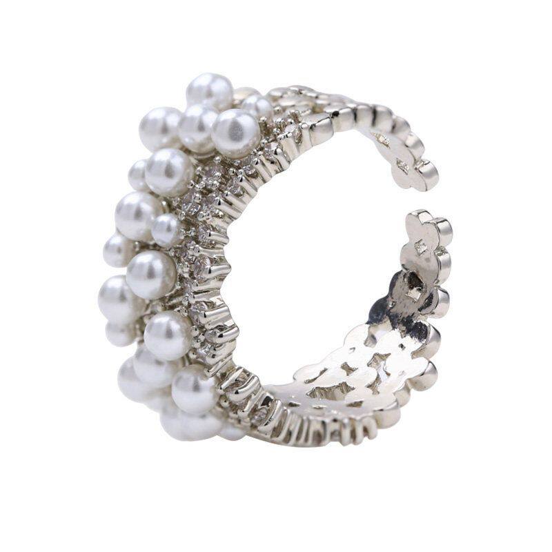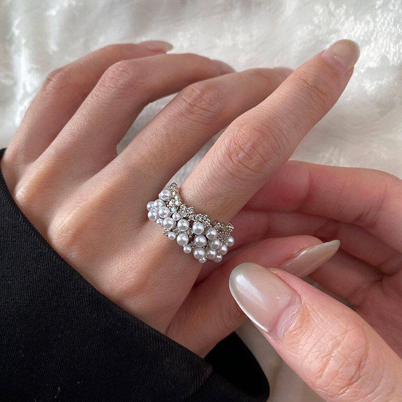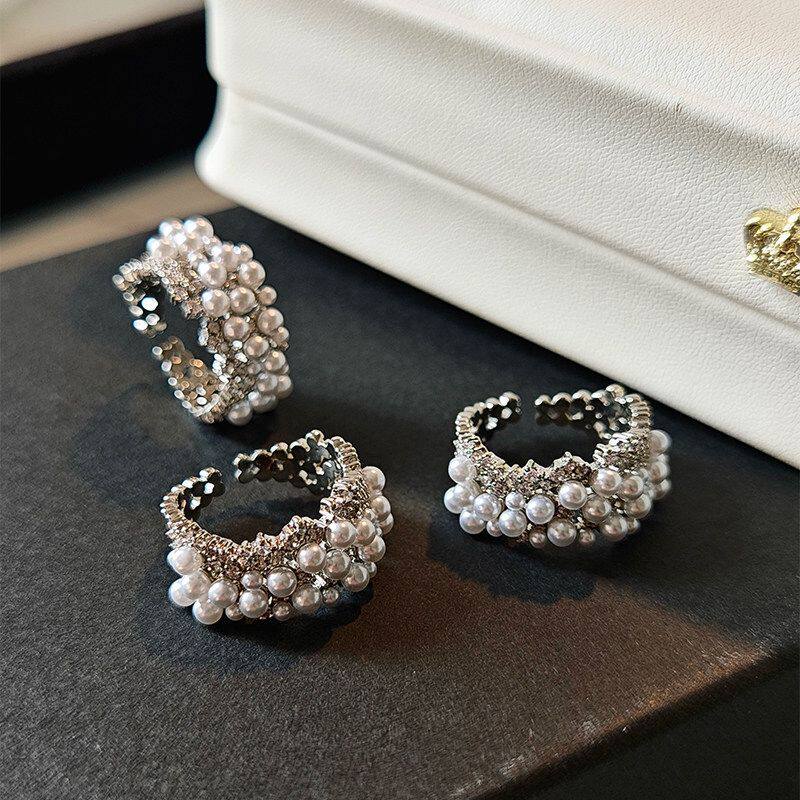 清冷感法式珍珠重工宽面戒指高级设计感韩系精致开口可调节食指戒
