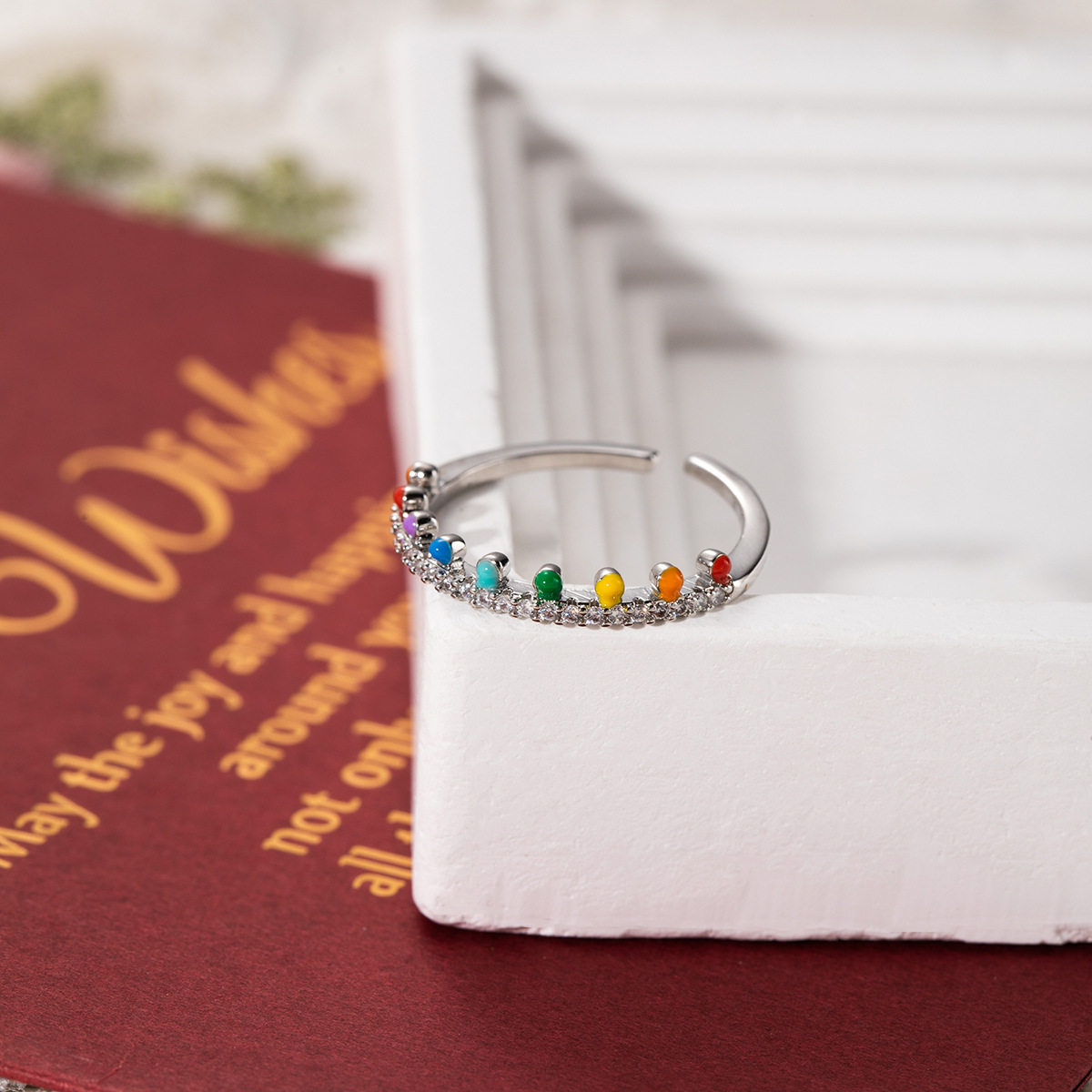法式浪漫珐琅彩马卡龙开口简约小众戒指女甜美小清新高级感手饰