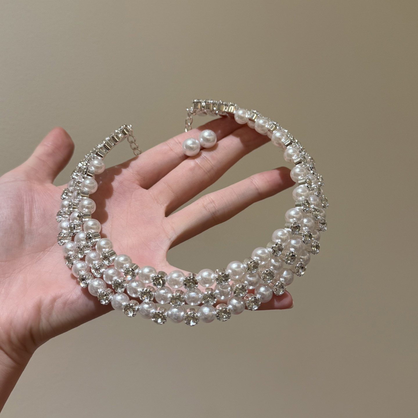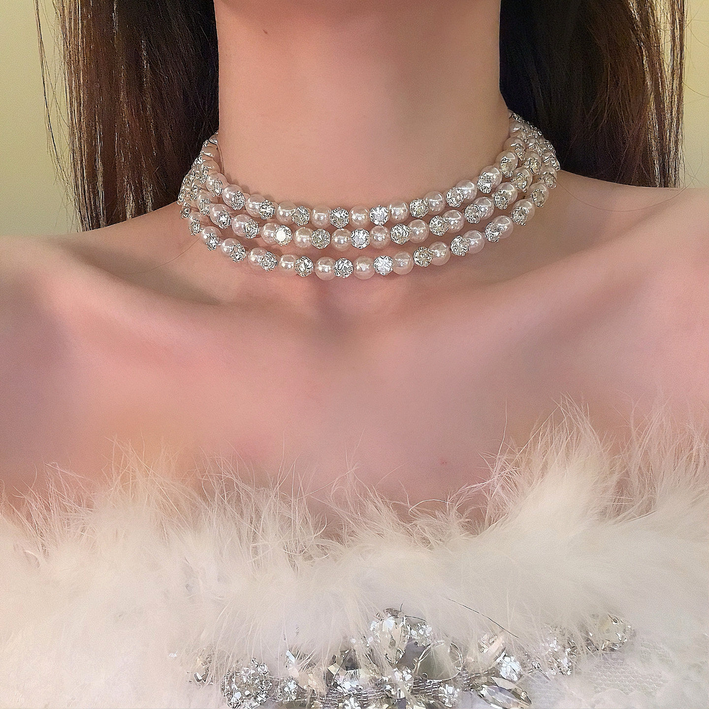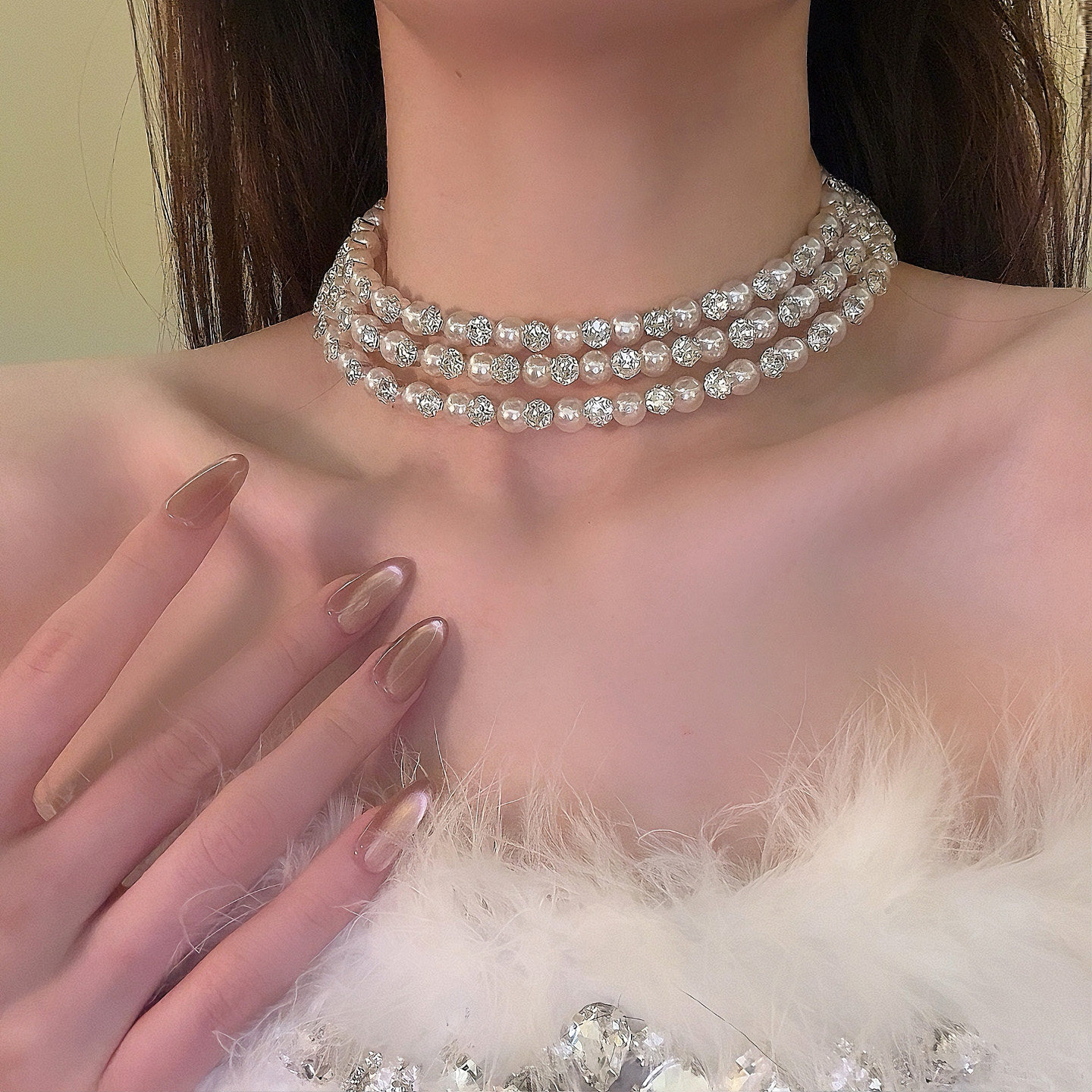 HEY TAO轻奢高级感闪锆珍珠项链夸张大气锁骨链宴会晚礼服配饰女