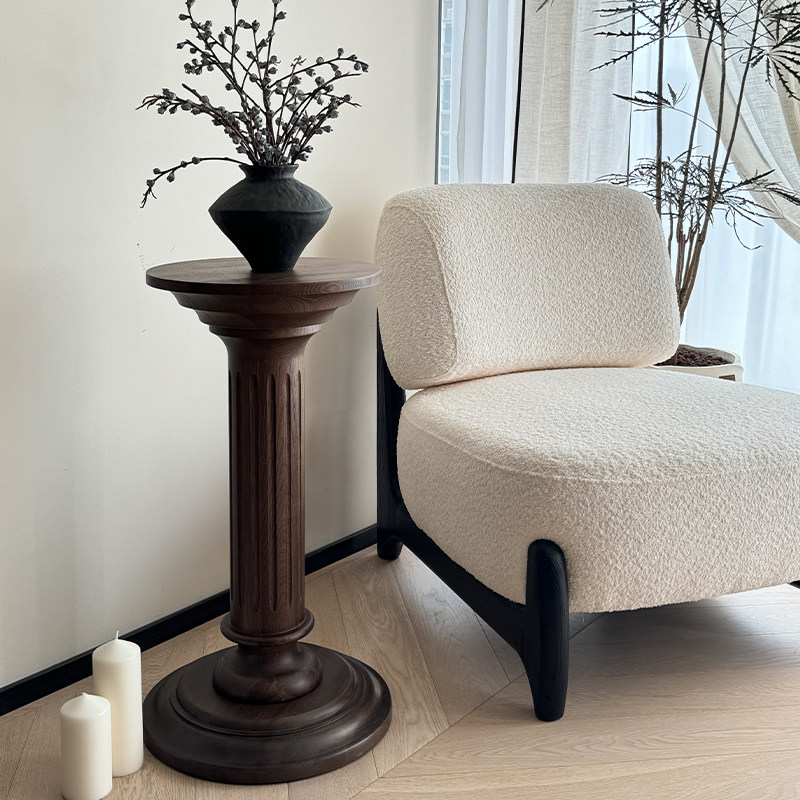 法式复古中古风罗马柱木墩实木摆件美式客厅卧室边几角几花架墩子