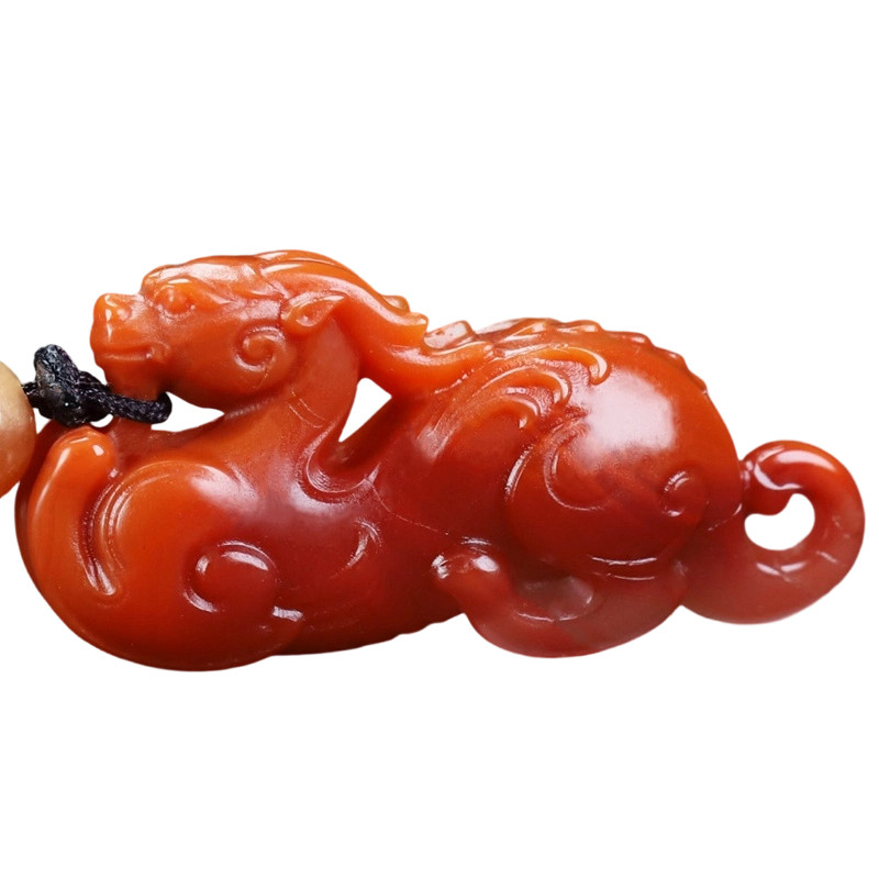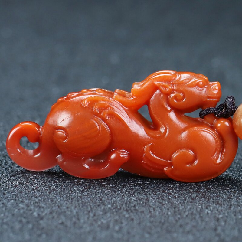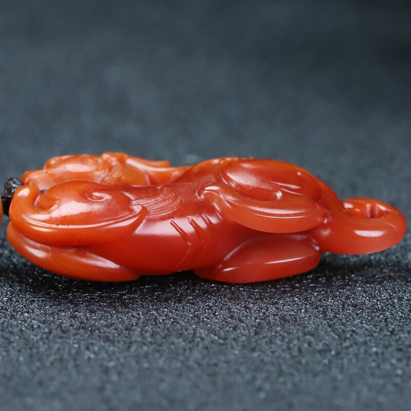 天然凉山南红玛瑙柿子红仿古貔貅吊坠挂件招财男女儿童款224号