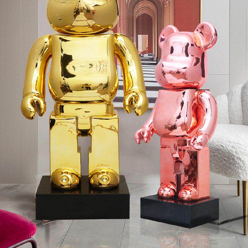 暴力熊公仔模型大型摆件雕塑木质实木黑色白色方形简约设计底座
