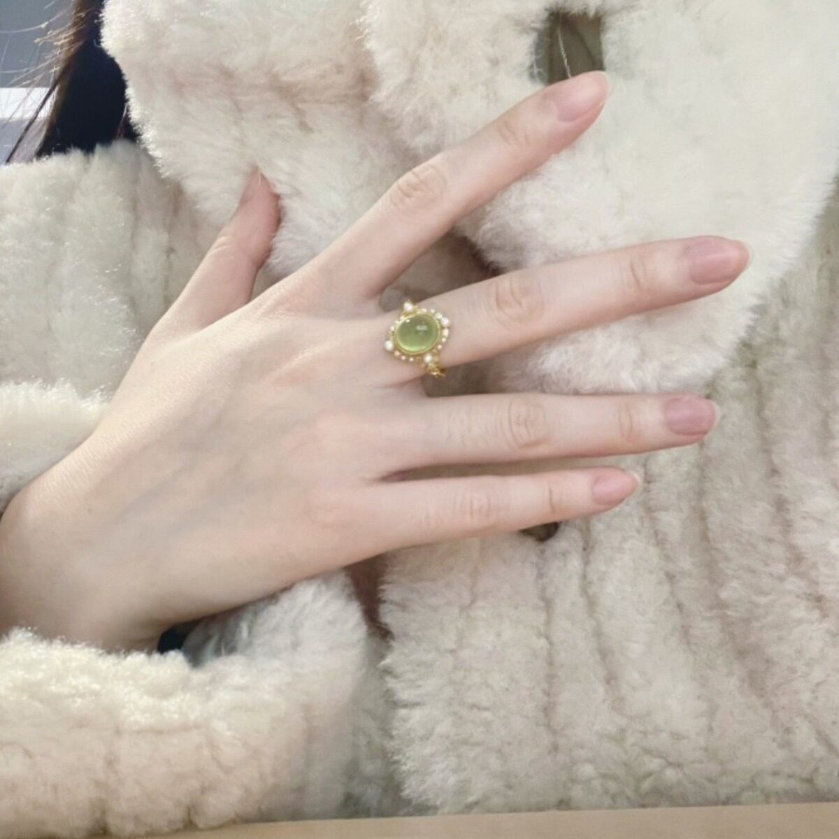 同款复古风嫩绿色戒指简约气质轻奢个性小众设计高级感指环