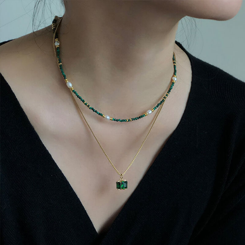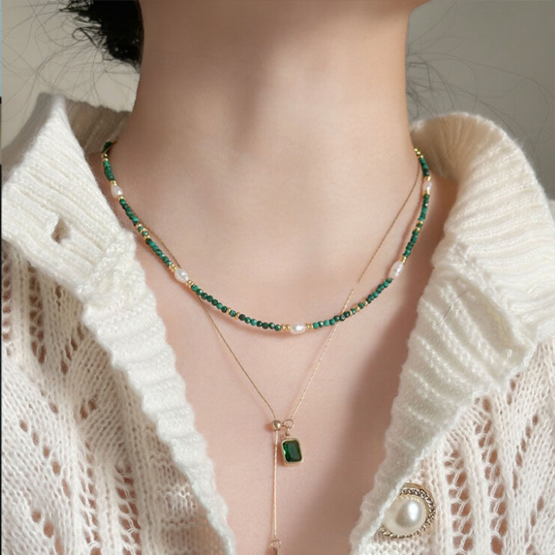 「青玄」复古绿色项链串珠仿珍珠叠戴锁骨链小众百搭高级感轻奢