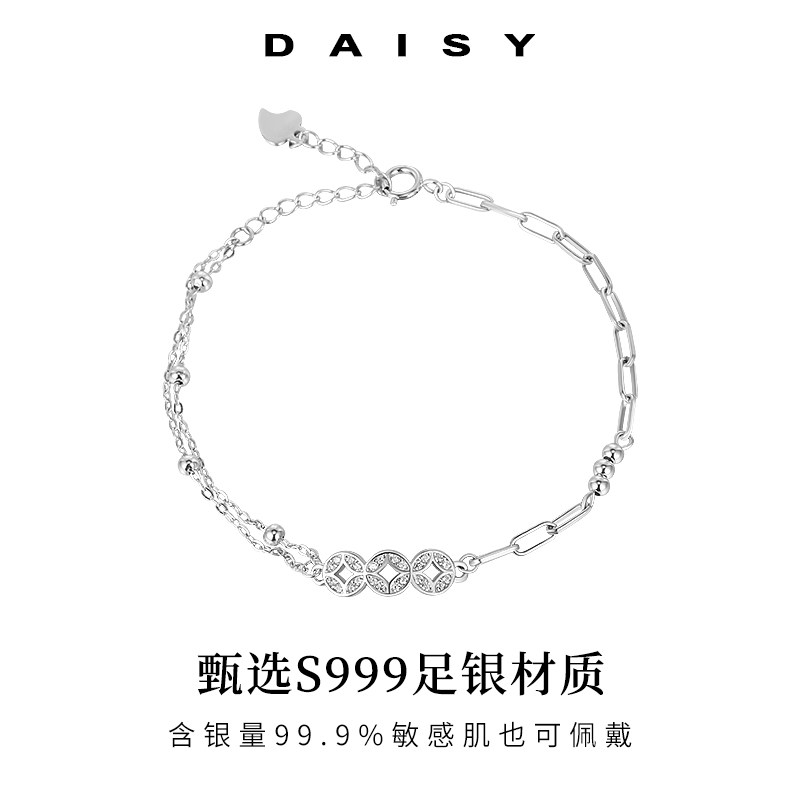 999纯银招财铜钱手链女2025新款轻奢小众精致手饰生日礼物送女友